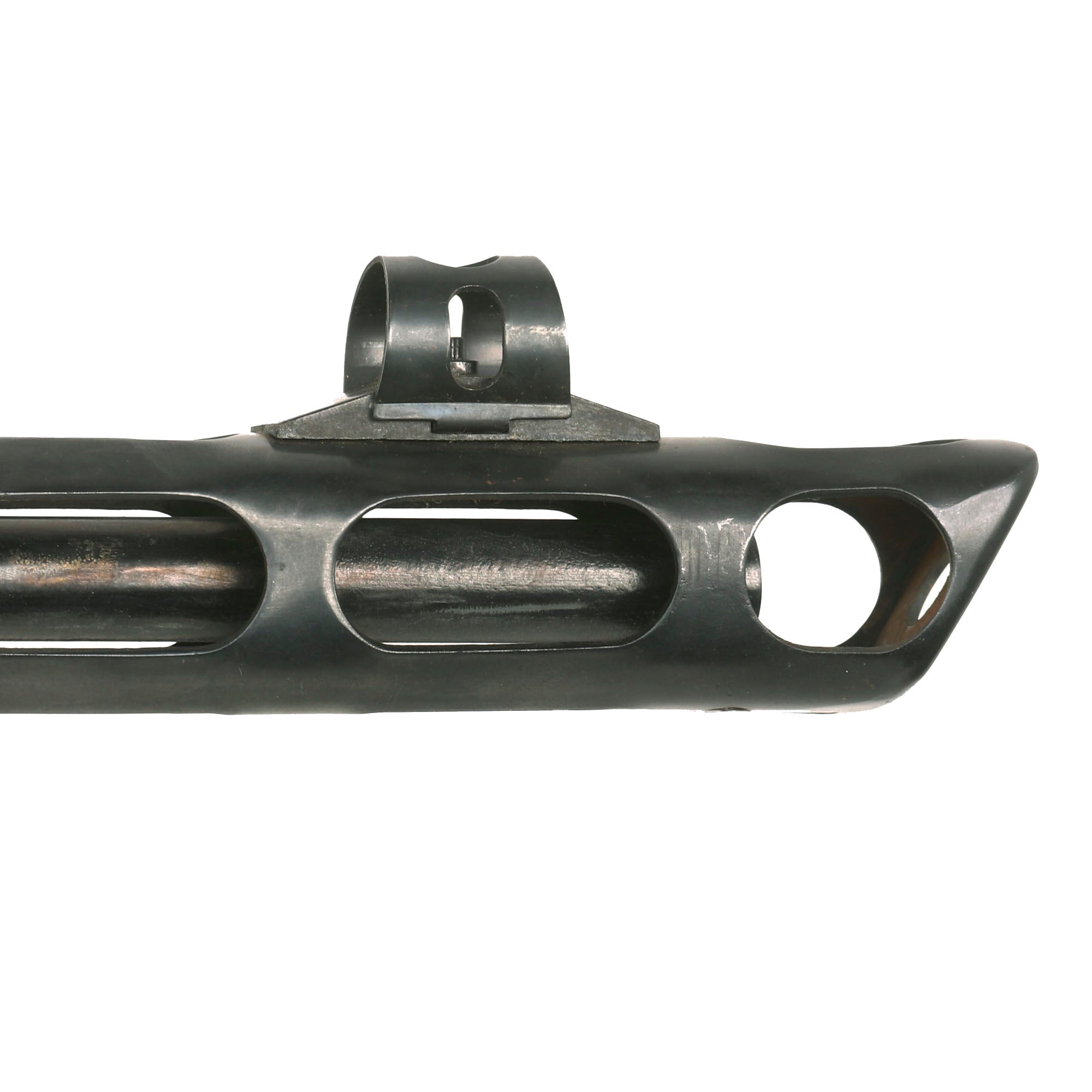 Designed to fire brass blank blow back rounds (rounds are not included). When the brass cartridges are fitted with the proper caps, this replica is designed to fire in semi and full auto modes. The tolerances are tight and the machining is accurate. These replica blow-back blank guns are essentially very realistic and sophisticated toy cap guns. They ignite a small primer that fits into the brass “cartridges” which, when the trigger is pulled, creates a small ignition that in turn cycles the bolt to blowback, eject the spent casing, then chamber another “round” to repeat the process. It will fire in semi-automatic or full automatic mode. The brass cartridges are 100% reusable. Brass cartridges are not included. Overall condition of this example is excellent.