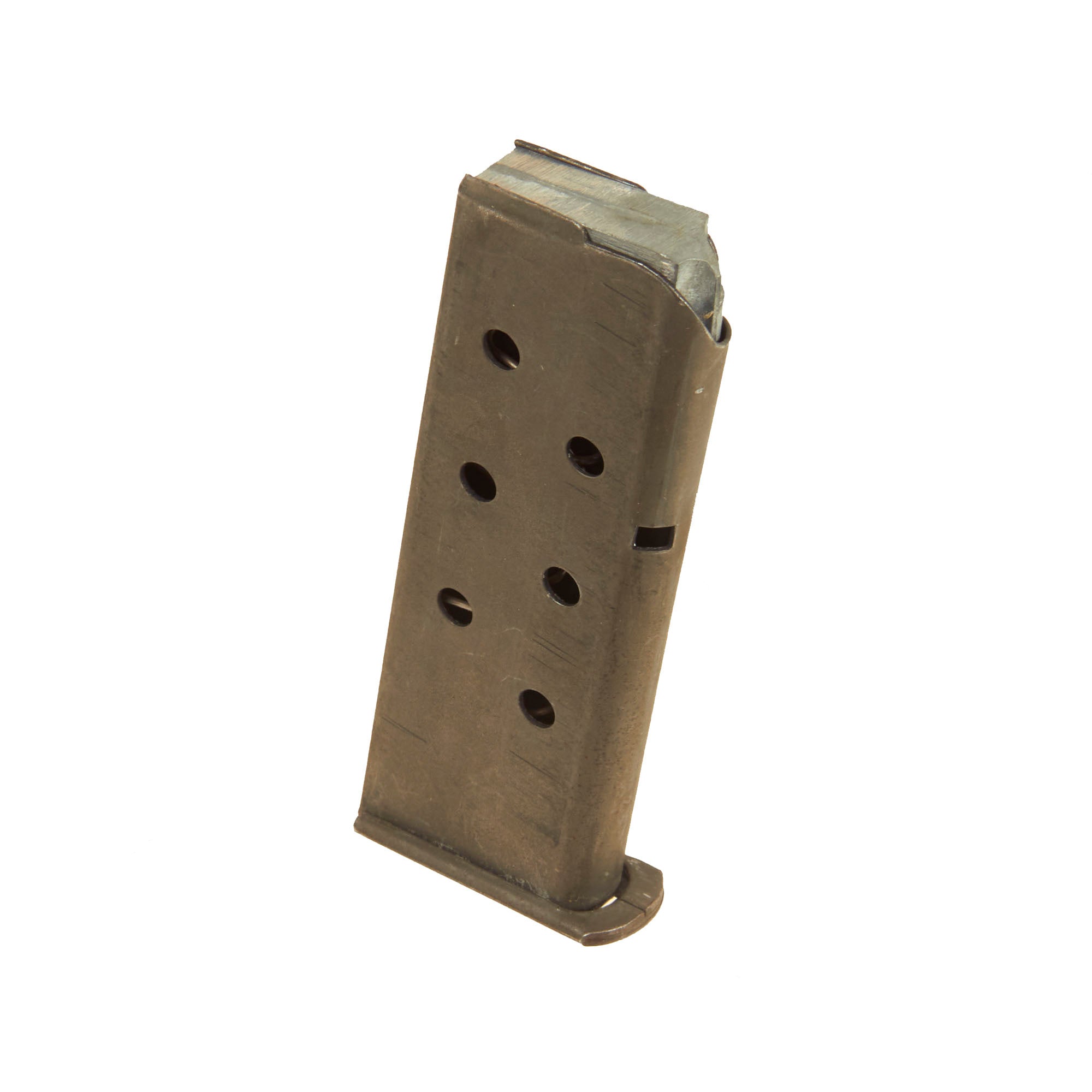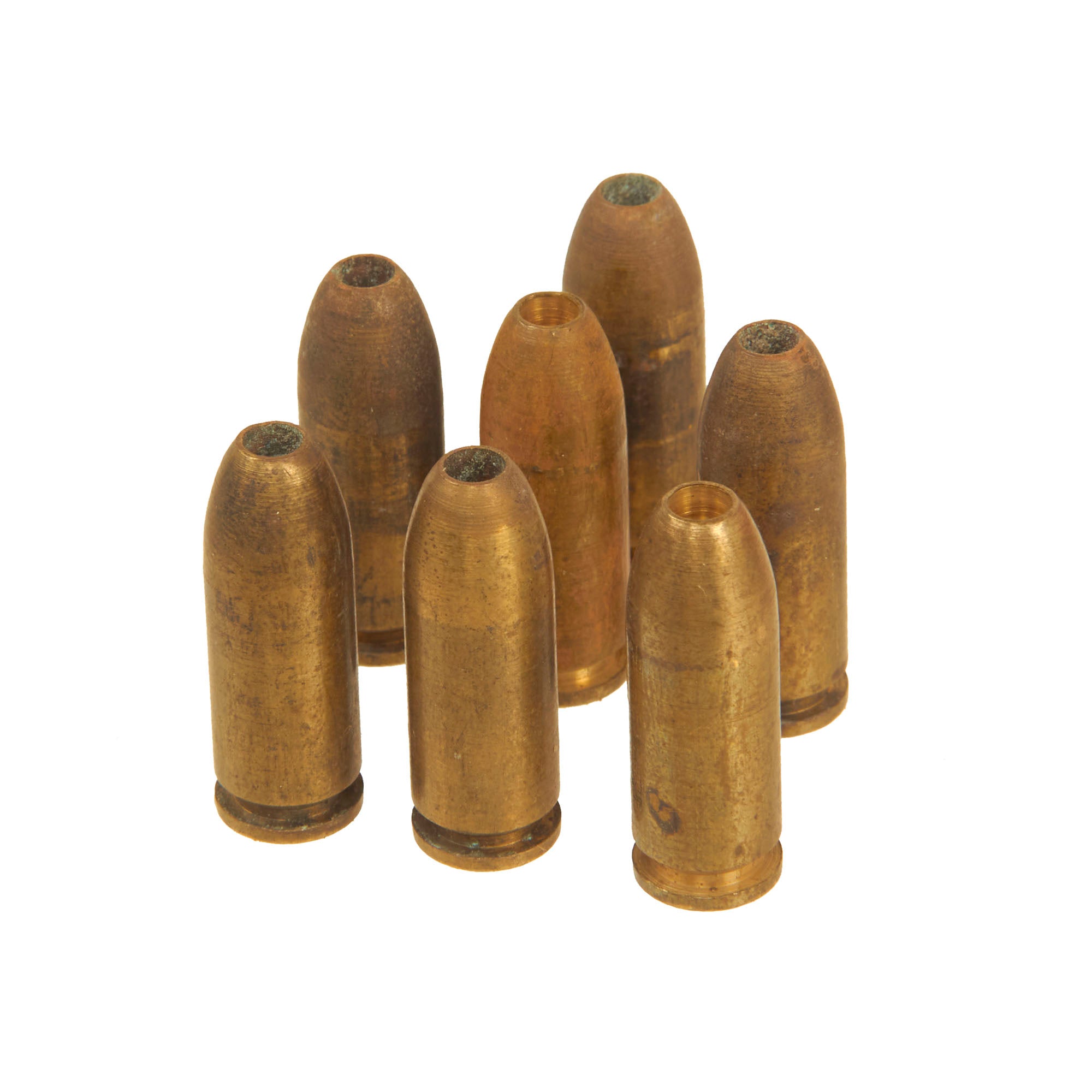 The replica comes with a good condition original 1960s box, one magazine, and seven plug/cap cartridge “rounds” which are nearly impossible to find! These work with replica "cartridges”, which have small caps "plugged" into the front of them, which are then detonated by the replica bolt. These were ejected like real spent cartridges, and could be reloaded with additional caps.