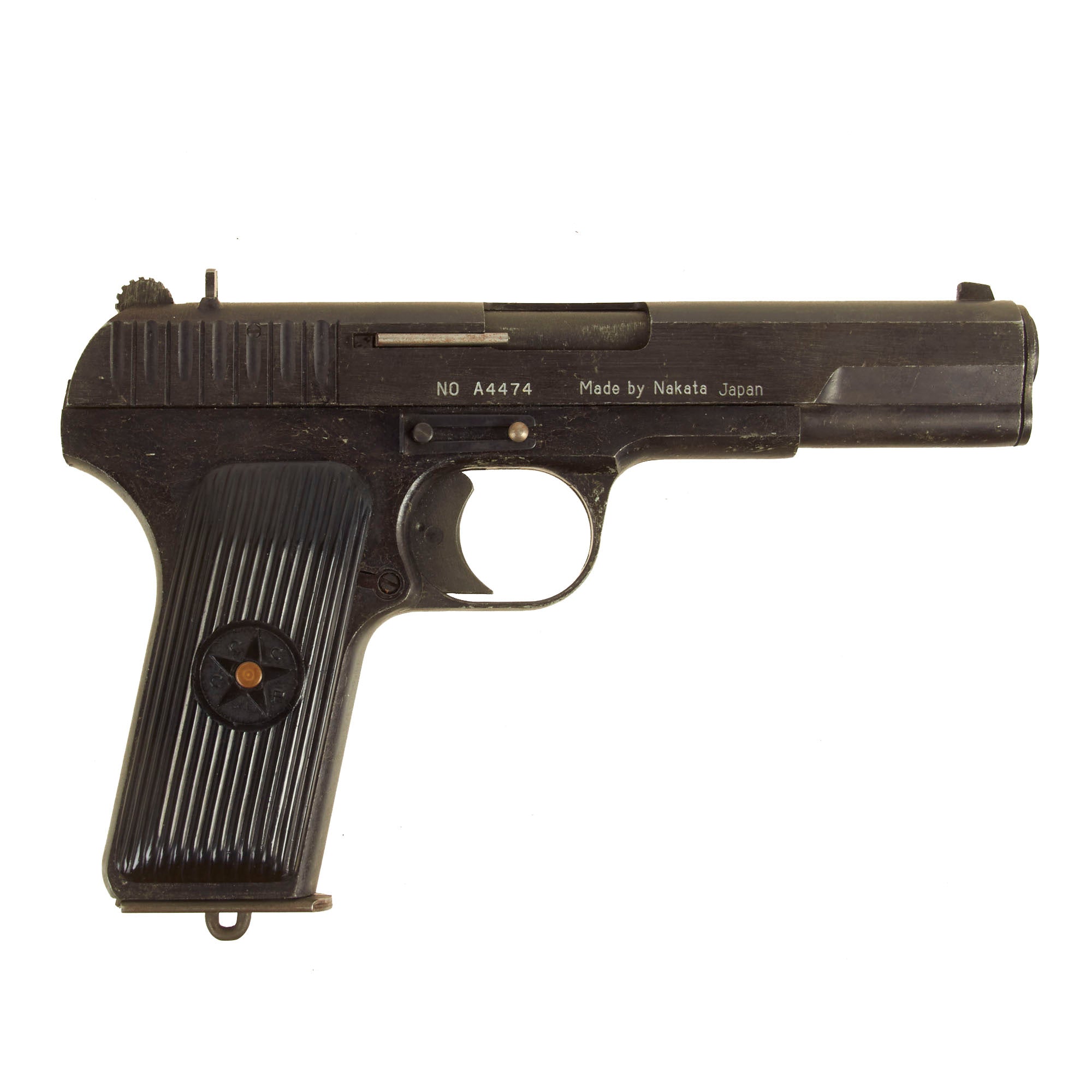 Vintage Replica Item: Only One Available. This is a fantastic high quality Soviet WWII Tokarev TT-30 "Plug Fire" replica gun, made by the well-known model gun manufacturers, Nakata of Japan. This is, by far, one of the absolute best examples of one of these collectible Nakata Pistols we have ever had the pleasure of offering! Comes with original box, schematic form and seven original cartridges, which are near impossible to find on their own!