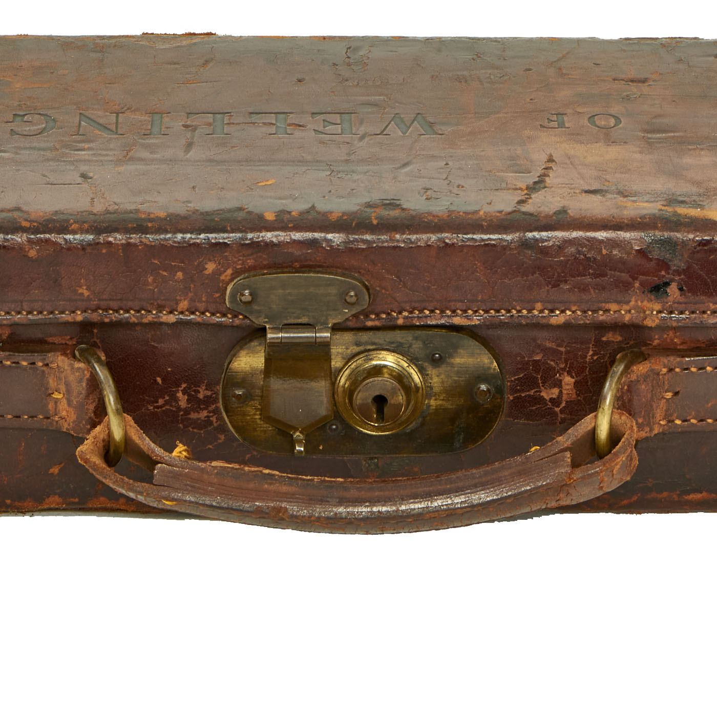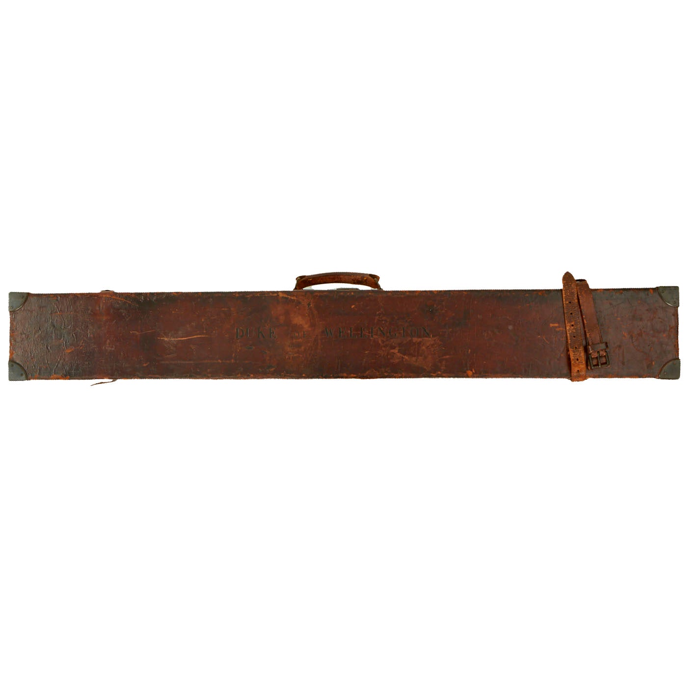 Original Item: One-of-a-Kind. This is truly a magnificent find! This is a fine old very early 19th Century substantial brass mounted leather Gun Case, which bears the remains of its original tag written in the Duke of Wellington’s own hand, which mentions Apsley House, his longtime residence after purchasing it from his brother in 1817.. It measures approximately 49” x 6 ½” x 4”.