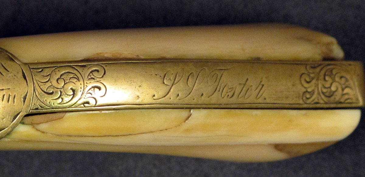 The famous Abolitionist S.S. Foster owned this revolver. Mr. Foster was giving a presentation in Cincinnati Ohio in 1858 when a riot ensued in which there was genuine concern for the great man's life. As a result, as we understand it, a female admirer, of the more mature variety, commissioned this presentation grade revolver expressly for Mr. Foster. Various Internet research is included with the revolver about Mr. S.S. Foster that expands on his fight against slavery.