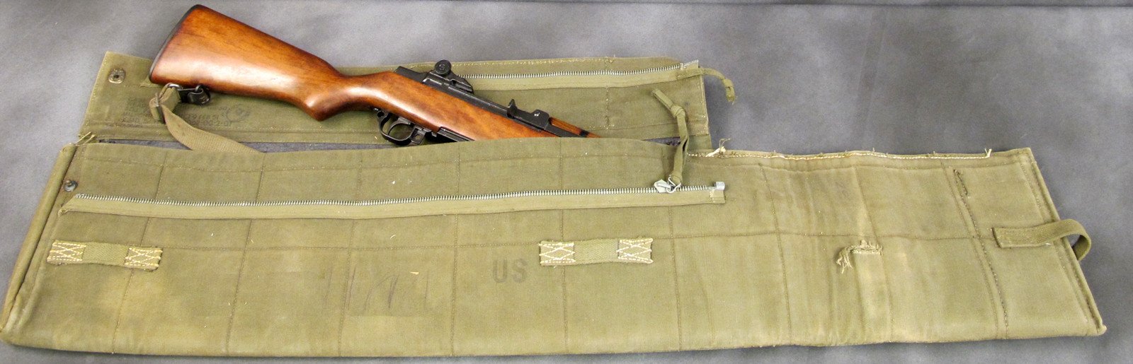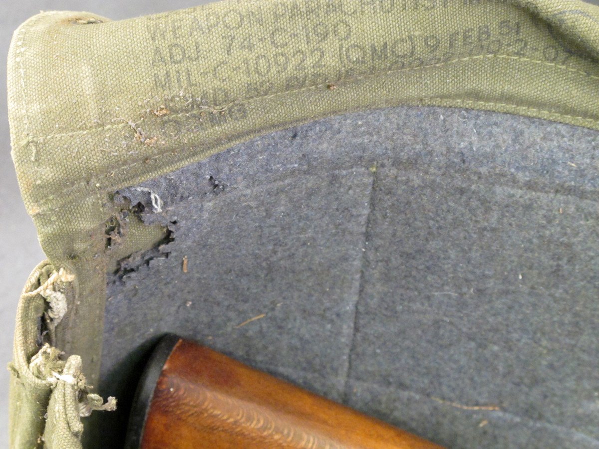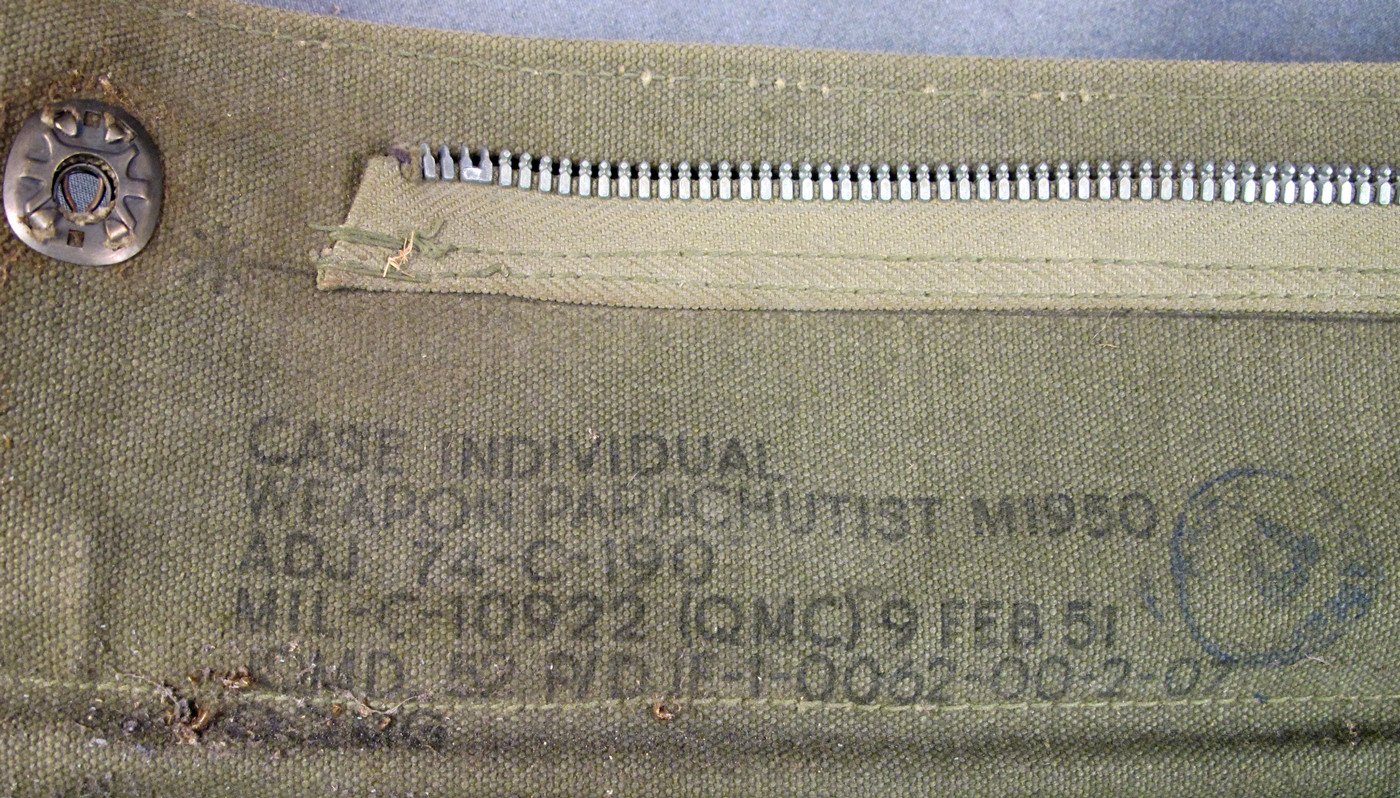 This M-1950 or Model 1950 was an improvement over the WWII drop case, as this case is long enough to accommodate a M1 Garand rifle without breaking it down into the three main groups. All of our examples are dated from the very early 1950’s making them Korean War era.
