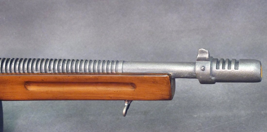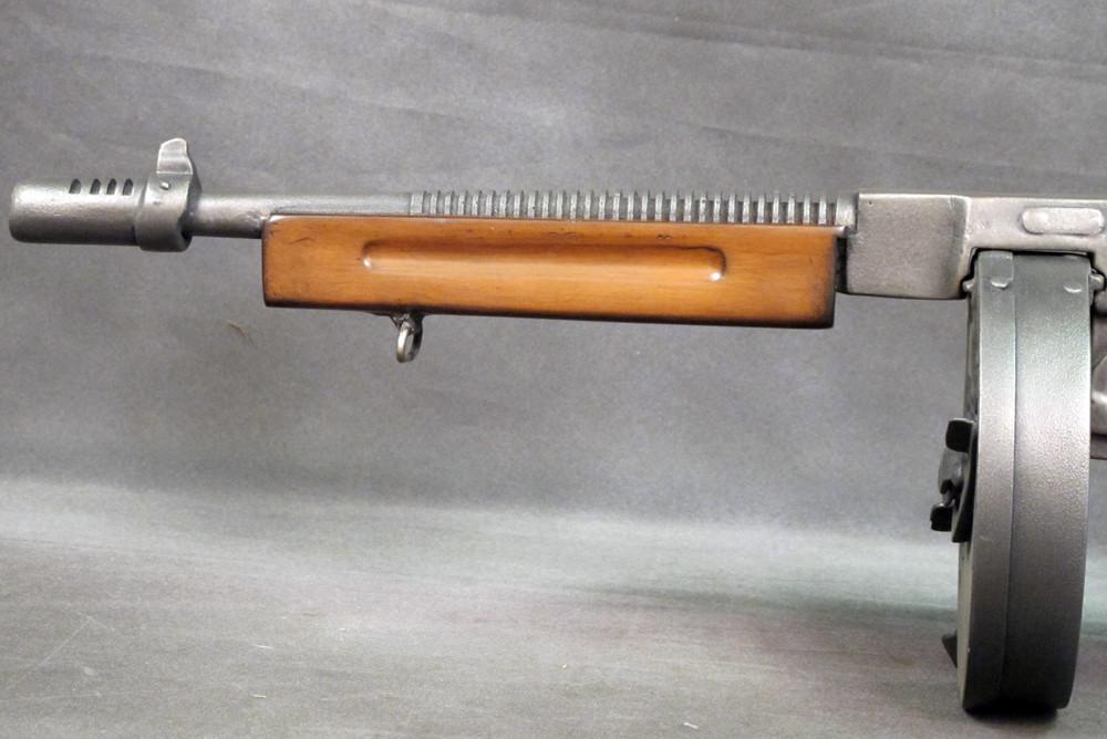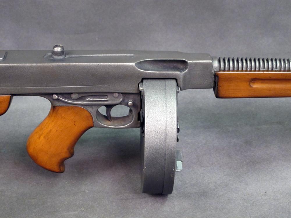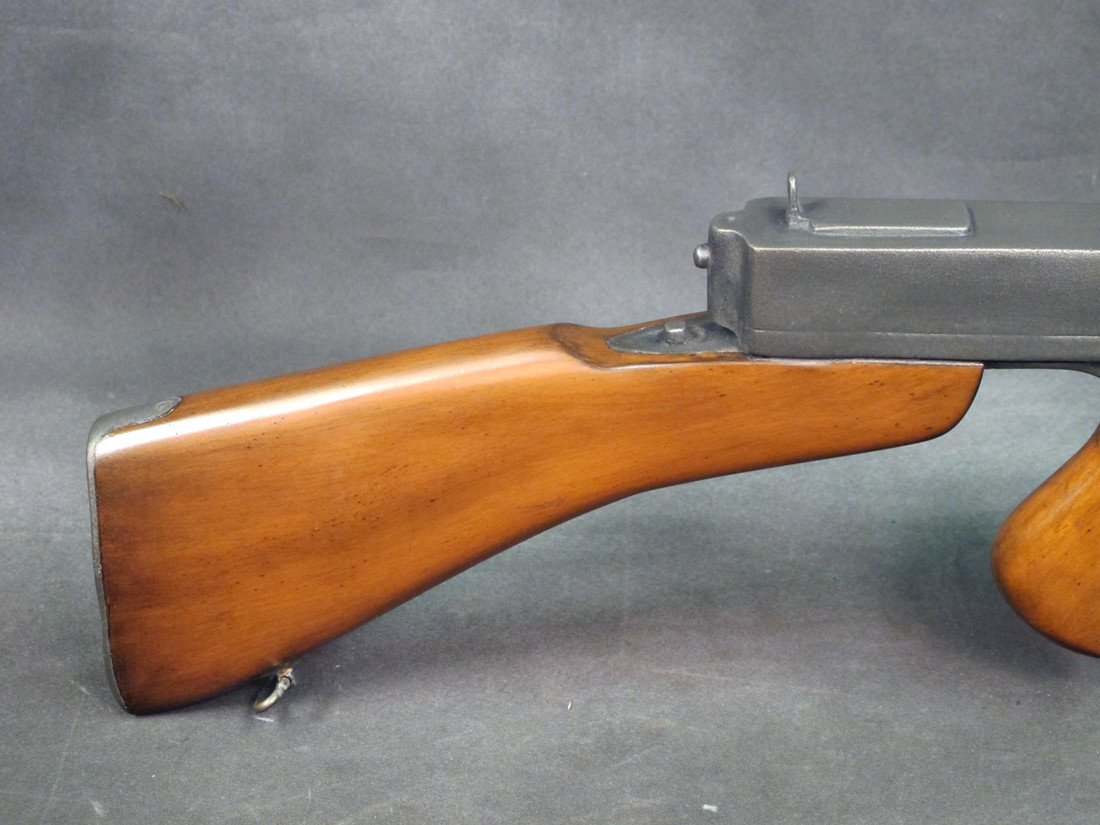 Our solid resin non-firing display gun is nothing short of stunning. It really does look like the real thing from just a few feet away. It was cast from a silicon mold of an original M1928 in the IMA collection and therefore is not only an accurate 1:1 scale but has all the details of the real thing. It has been expertly air brushed to provide the cold glimmering look of steel and the warm richness of walnut wood stocks.