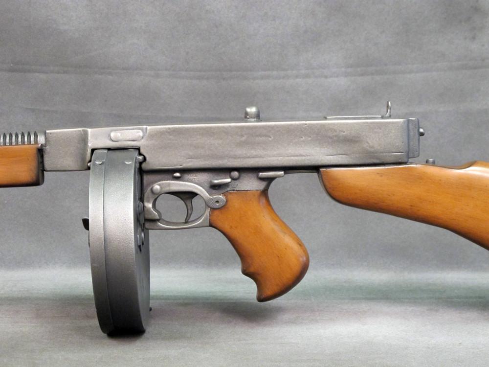 New Made Item: The infamous Thompson Model 1928 aka the "Tommy Gun" was favored by every mobster and gangster in the prohibition era and after for its firepower and portability. It was a common sight of the time, being used by both law enforcement officers and criminals. The Thompson was also known informally as: the "Tommy Gun," (the tommy gun is actually the Thompson M1928) the "Trench Broom," the "Trench Sweeper," the "Chicago Piano," the "Chicago Typewriter," and the "Chopper", the manufacturer referred to this as the "Commercial Model". Even the infamous John Dillinger, Public Enemy Number One, favored the Thompson submachine gun.