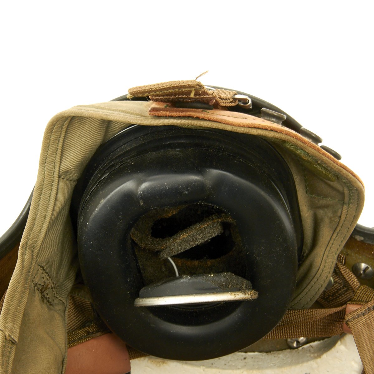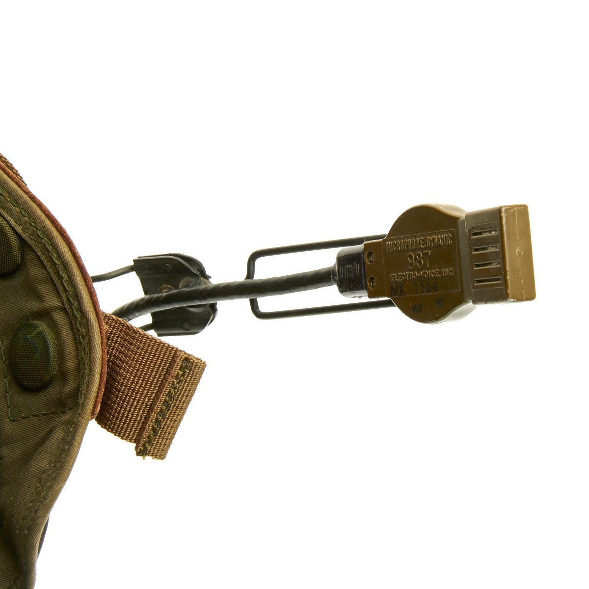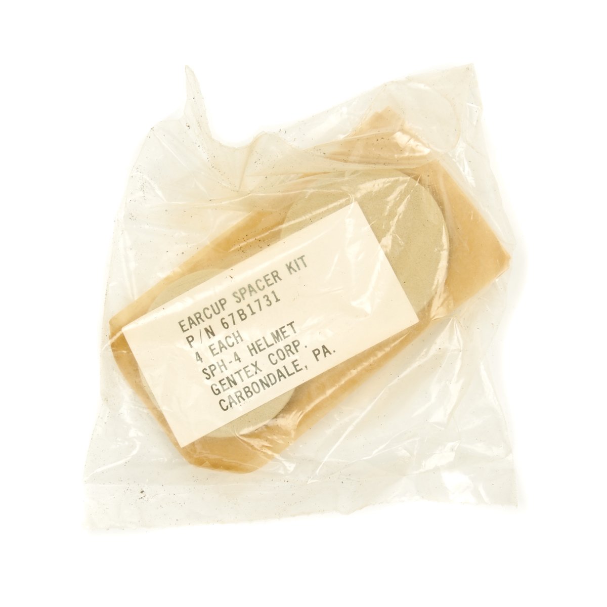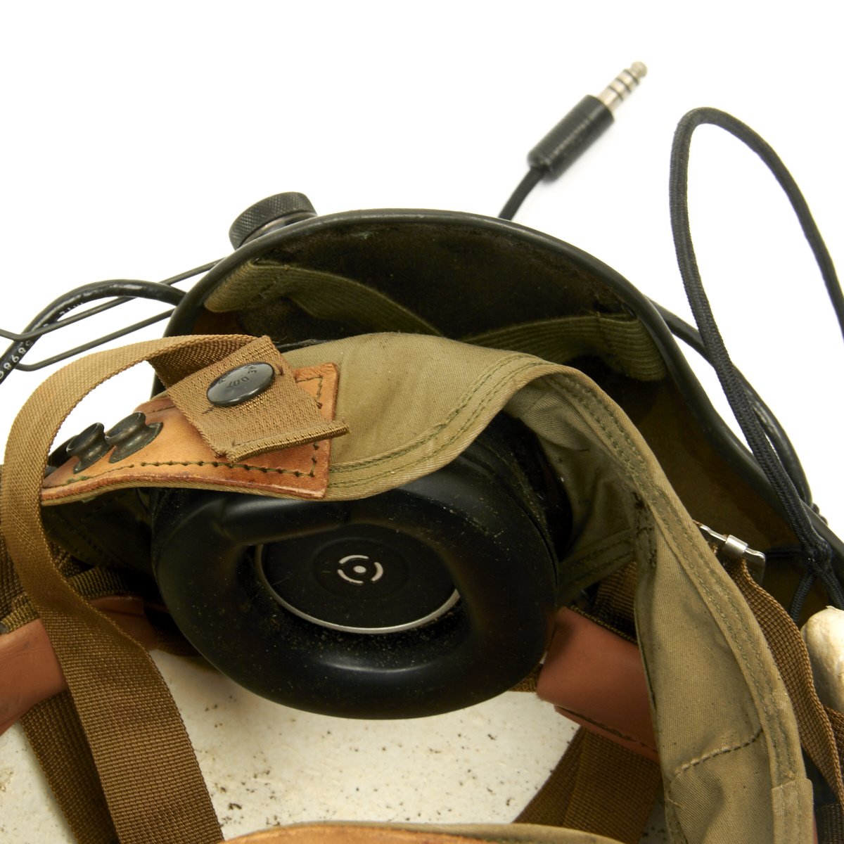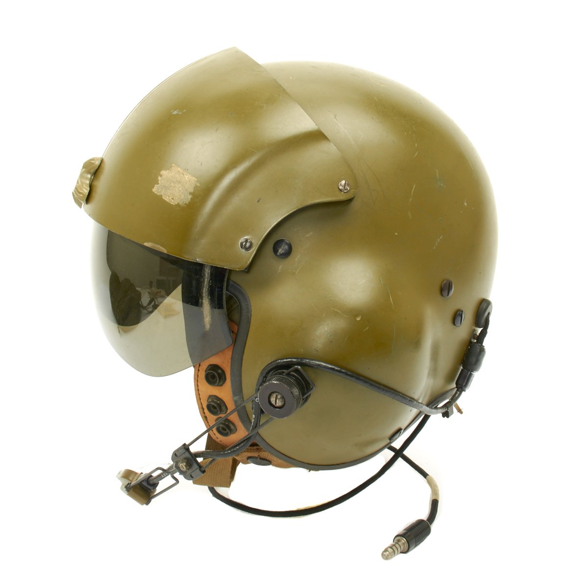 The original SPH-4 had a shell made of fibreglass cloth layers bonded by epoxy. The inner polystyrene foam energy absorbing liner was 97 mm (0.38") thick with a density of 5.2 lb/ft3. The helmet was fitted with a sling suspension liner and had a nape strap with a single snap on each side fitting to studs on a retention harness. The chin strap had a design strength of 150 lbs. The headset was mounted in 6 mm thick moulded plastic ear cups with excellent sound attenuation characteristics. A size regular helmet weighed 1.54 kg (3.4 lbs).