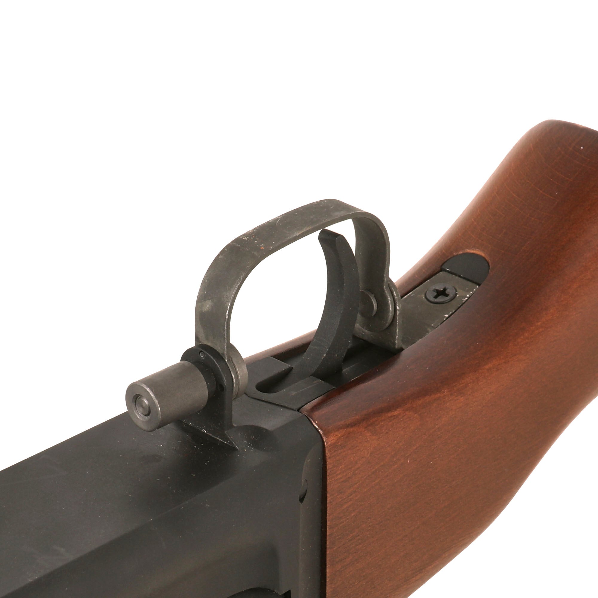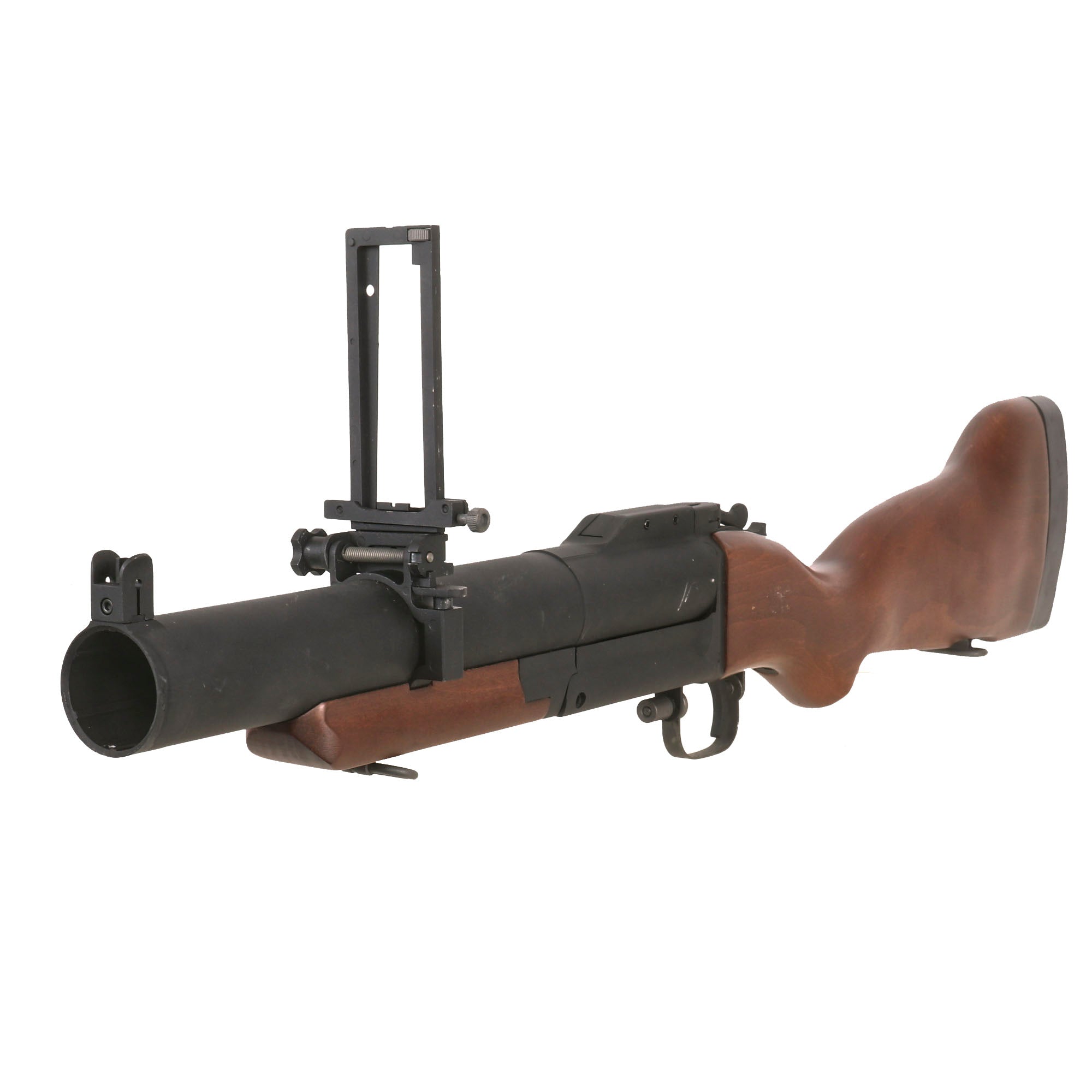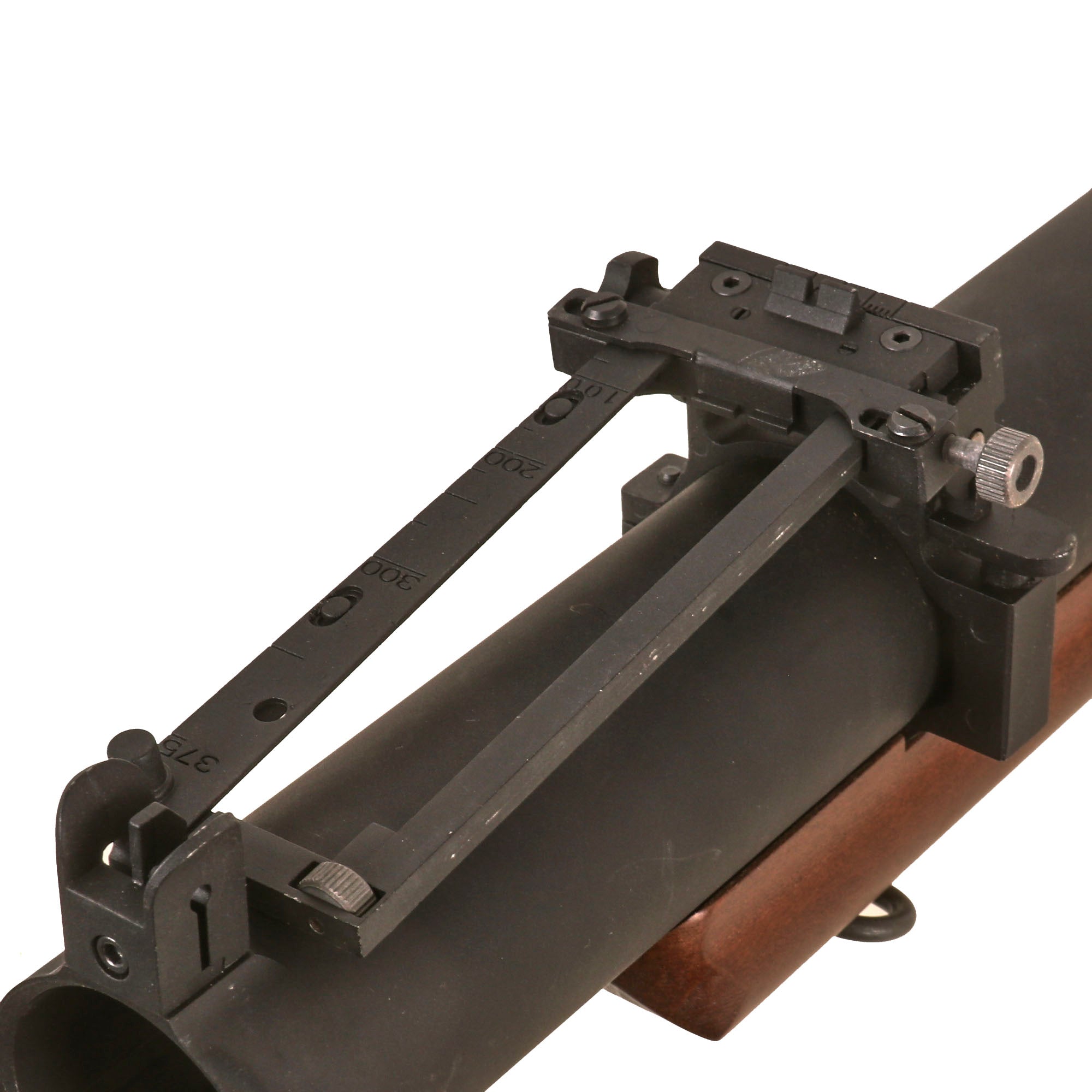 New Made Item: Inert and cannot be converted to a destructive device. Used but very good condition full size 1:1 scale replica of the M79 Grenade launcher used by American forces during the Vietnam War. This is a single-shot, shoulder-fired, break open grenade launcher fires an Airsoft 40mm gas grenade. The M79 can fire a wide variety of 40 mm rounds. This M79 grenade launcher is a full metal launcher with a real wood stock, which a rubber pad affixed to the shoulder stock to make it more supportive and comfortable when aiming. The trigger guard can be rotated either to the left or right side by pushing the button on the front of the trigger guard. This example comes with a bandoleer holding six dummy rounds, great for display.
