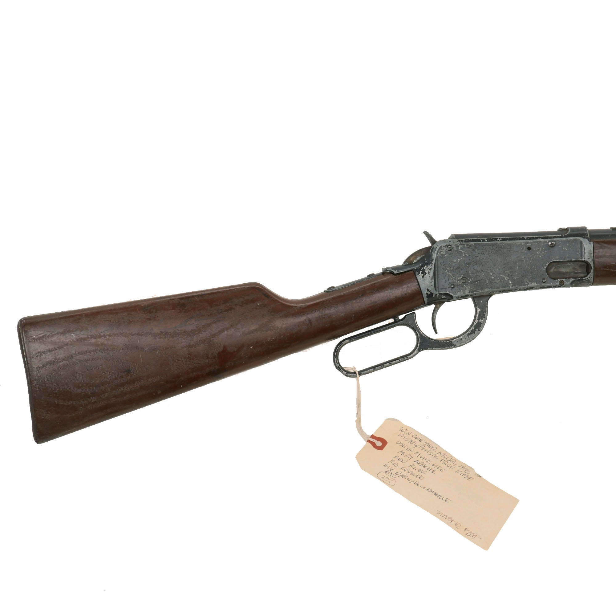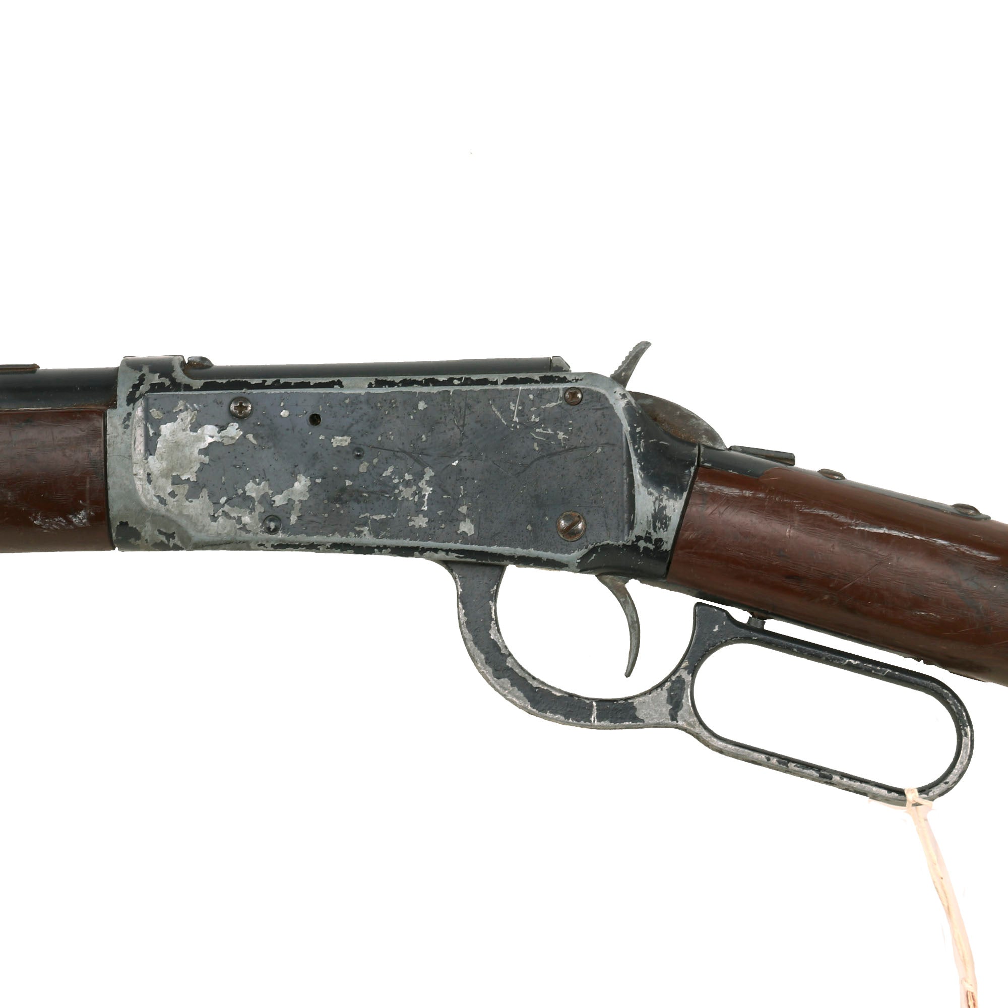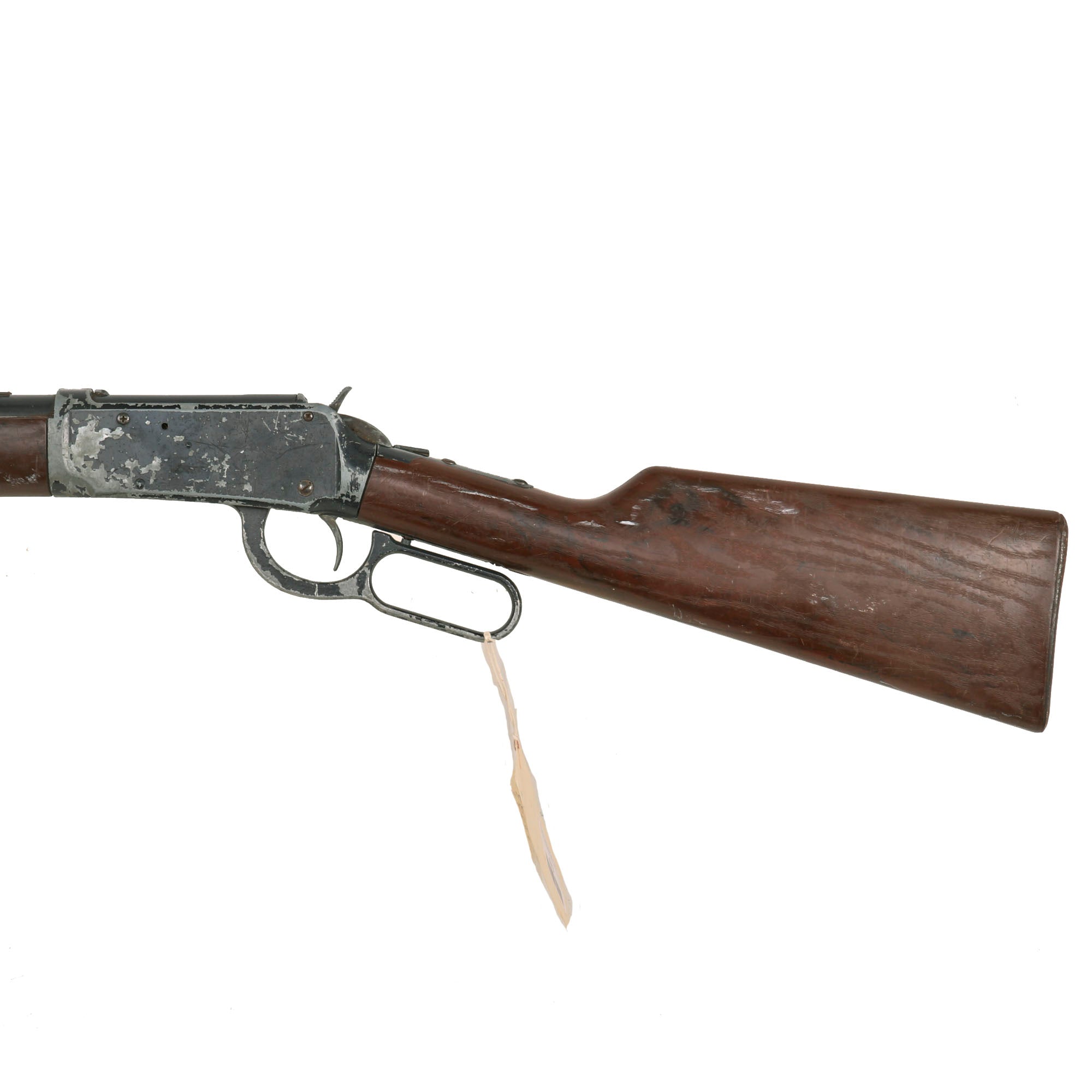 Original Item: Only One Available. This particular Winchester rifle is a true embodiment of the spirit of the Wild West. The Daisy BB Gun Model 1894 (Winchester) was part of a collection acquired from a prominent Los Angeles prop house. Despite being a Daisy BB Gun Model 1894, it's not uncommon to see these being utilized as props in film productions. This particular model adds an authentic touch to any production seeking to capture the essence of the Wild West.