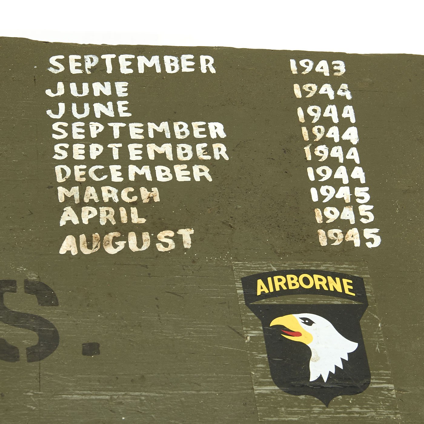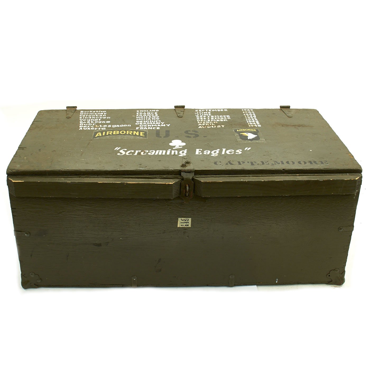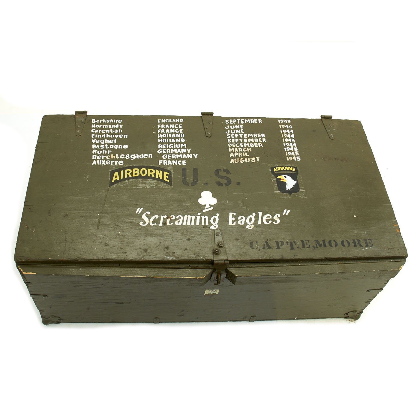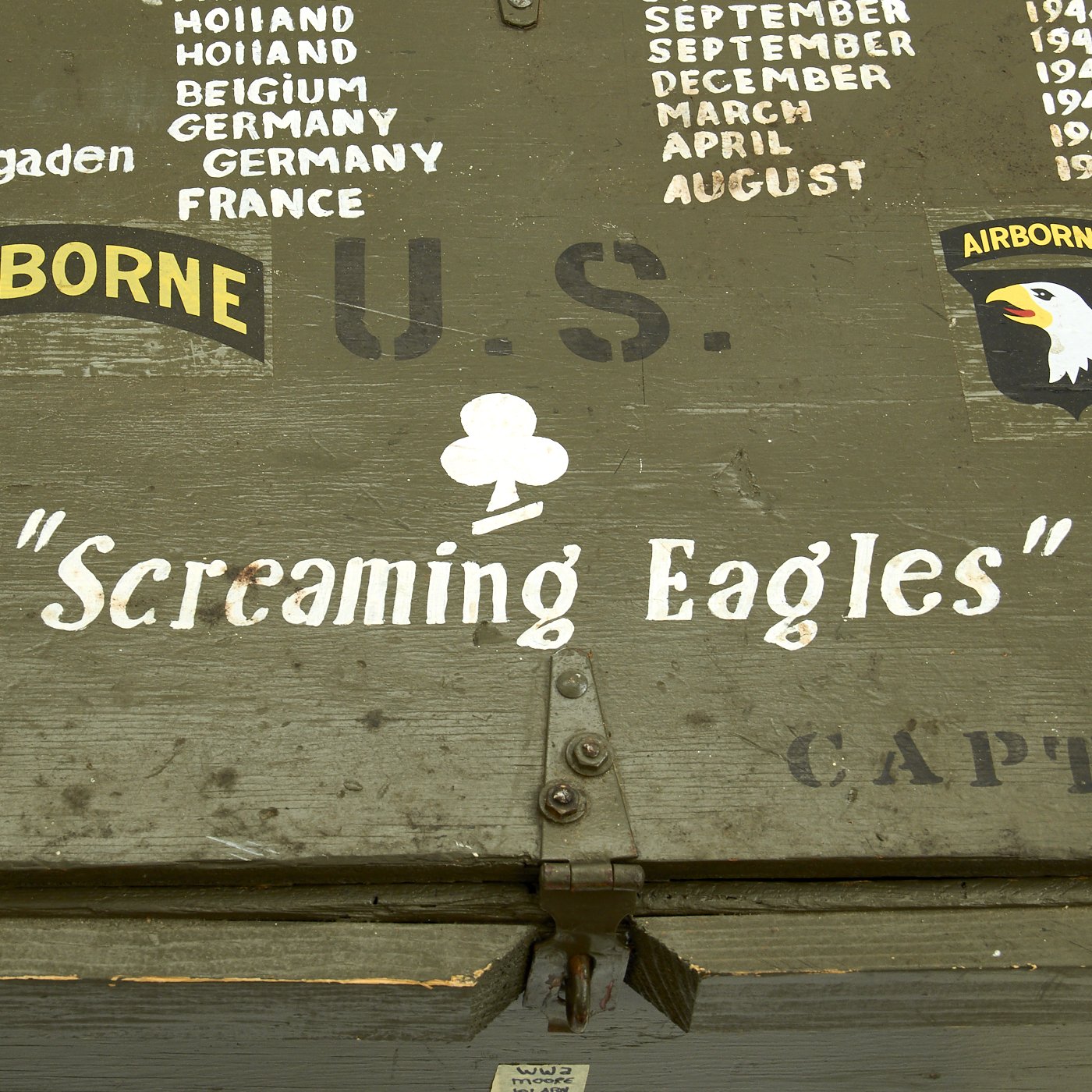 Newly Made and Original Items: This is an entire trunk full of United States 101st Airborne 506th Parachute Infantry Regiment Band of Brothers uniform and equipment, they all belonged to the same reenactor and was an officer impression that he had created. It consists of jump uniform, accessories and more. As far as sizing the uniform it is approximately 40-42 US. Please see photos for what is included.