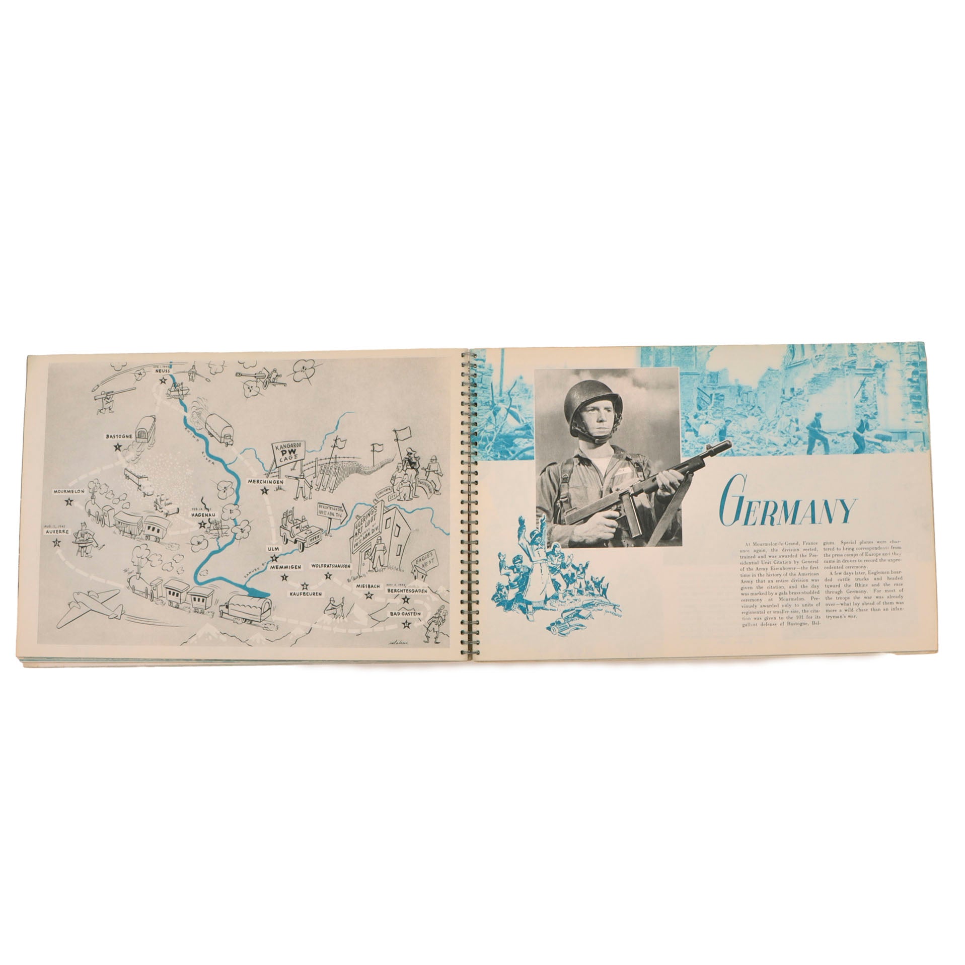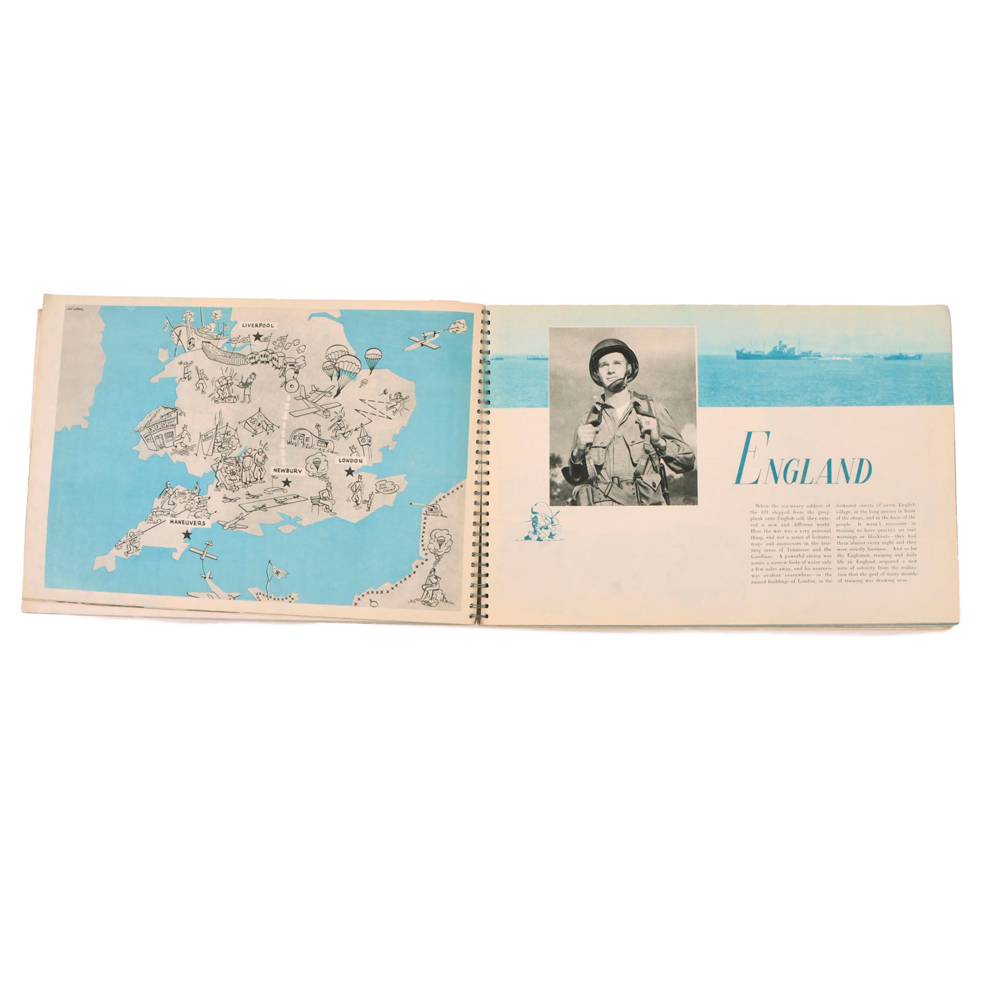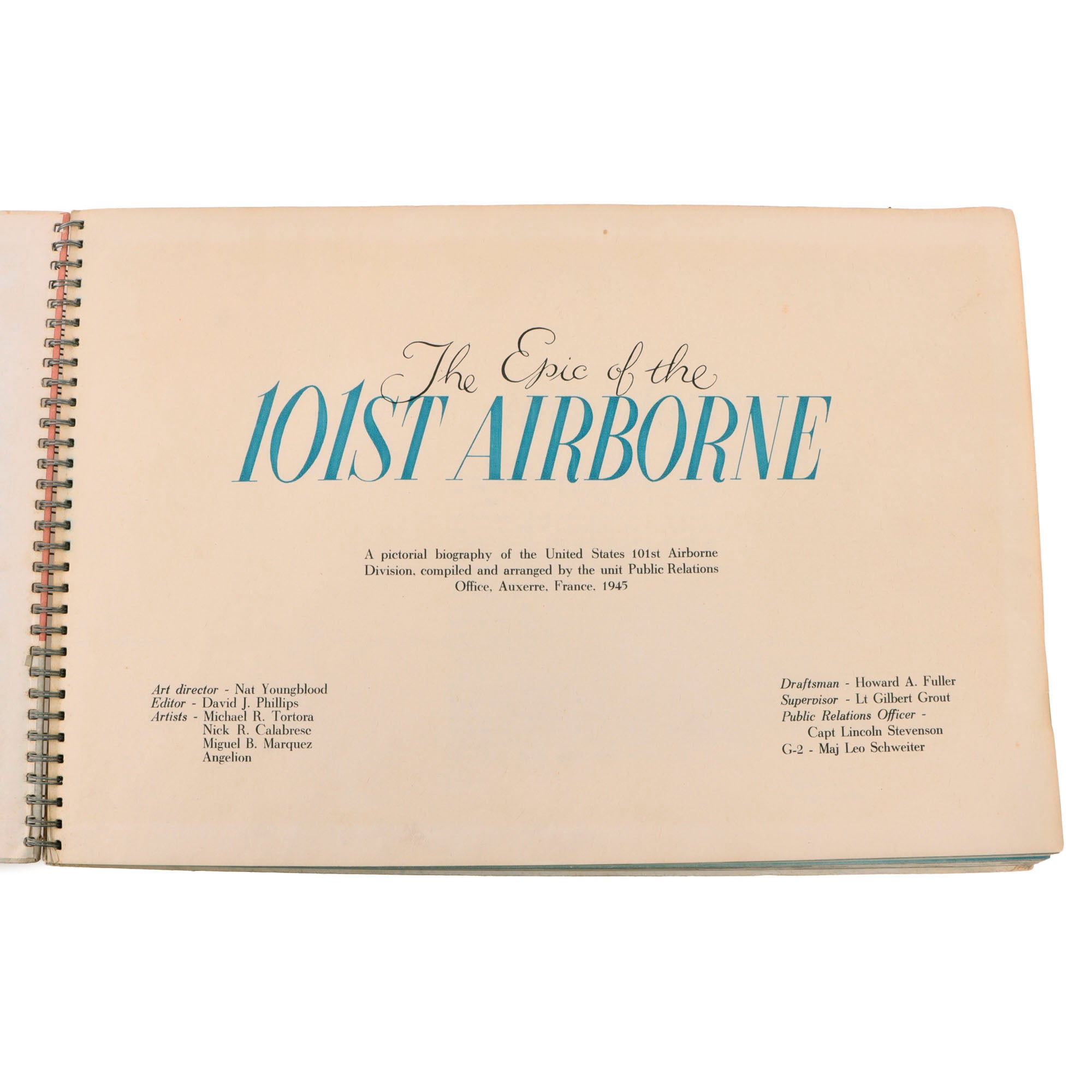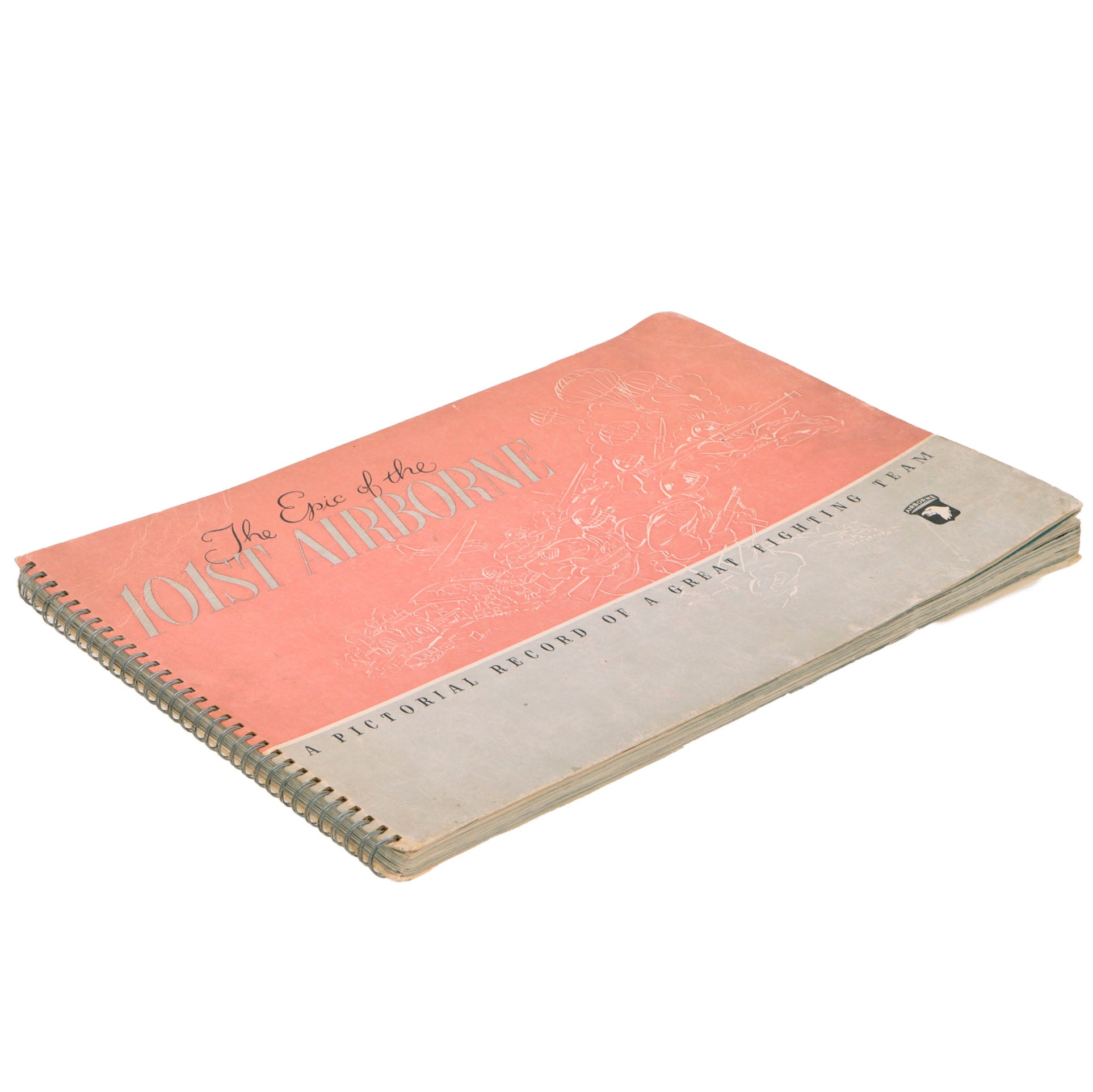 This is an exceptionally hard to find original 1945 publication, not the modern reprint. Over-sized stiff card covers (elephant folio in an oblong format) spiral bound, so the book will open flat. There is some surface soiling to the front and rear covers with bending of the front cover as shown. There is some wear to the edges of the covers.