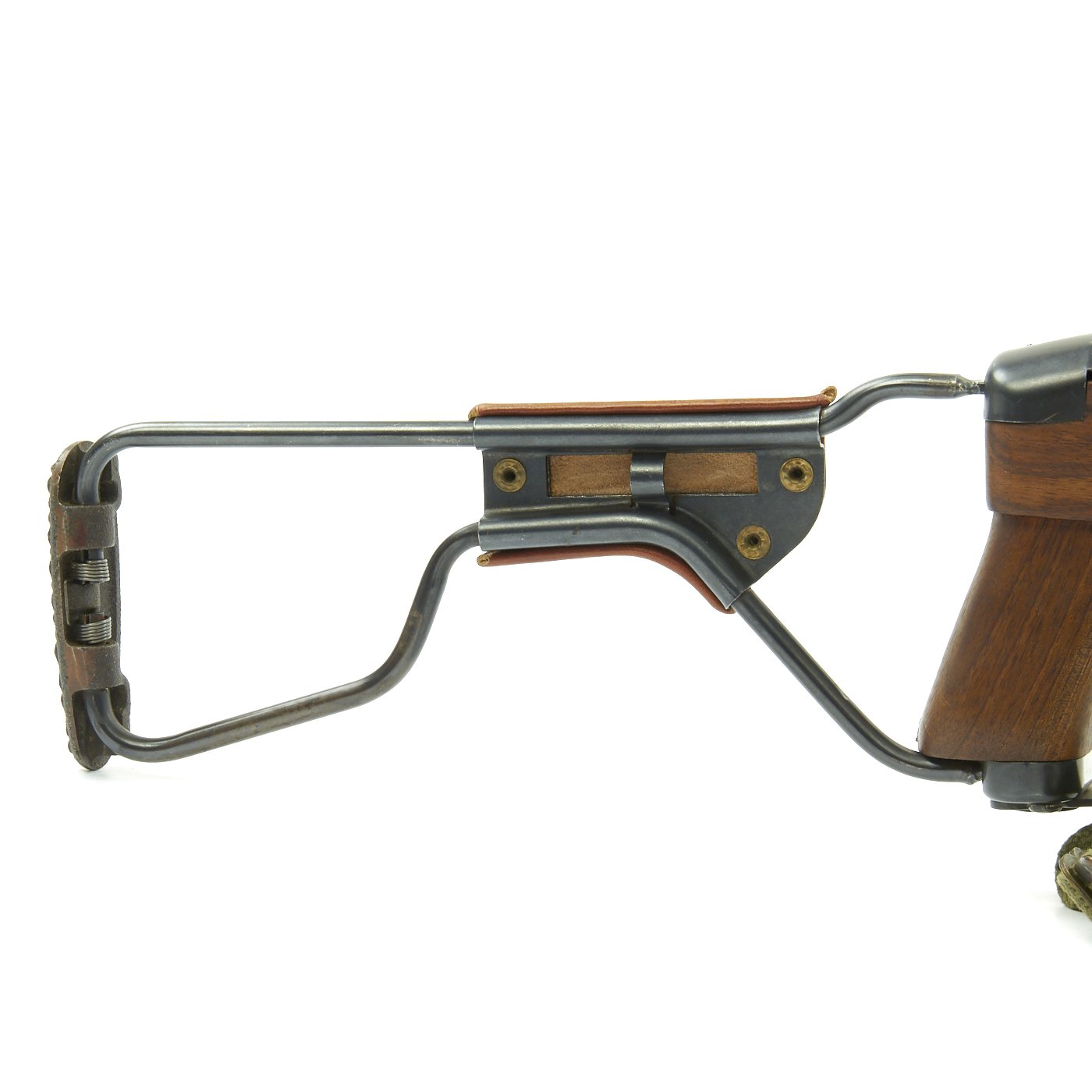 This is a full sized 1: 1 scale completely non-firing dummy M1A1 Carbine display rifle. Stock made from hard wood with steel receiver and barrel, the action does not move and the bolt is fixed. The receiver is nicely stamped 50th Anniversary 1941 -1991. The wire stock folds and extends and the butt plates folds flat. Also included is a reproduction sling and high quality reproduction paratrooper jump bag.