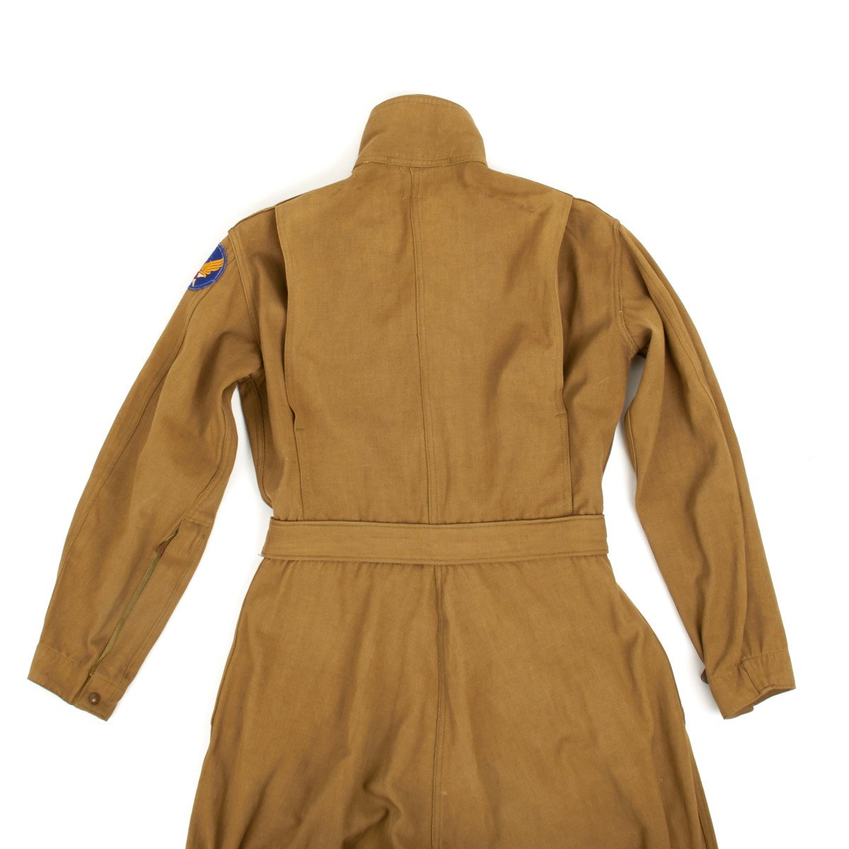 These were designed and put into production pre-WWII so they are well used by the Army Air Corps and the Army Air Forces. These were used by all pilots and flight crews during the war and were see in all theaters of the war. As described in the book "Gear Up," the A-4 Type suit was made of olive drab gabardine with a zipper front and belted waist. It usually had a diagonal chest pocket and an open pocket on the right shin. This suit was standardized March 18, 1930 and was used in various forms throughout WWII.