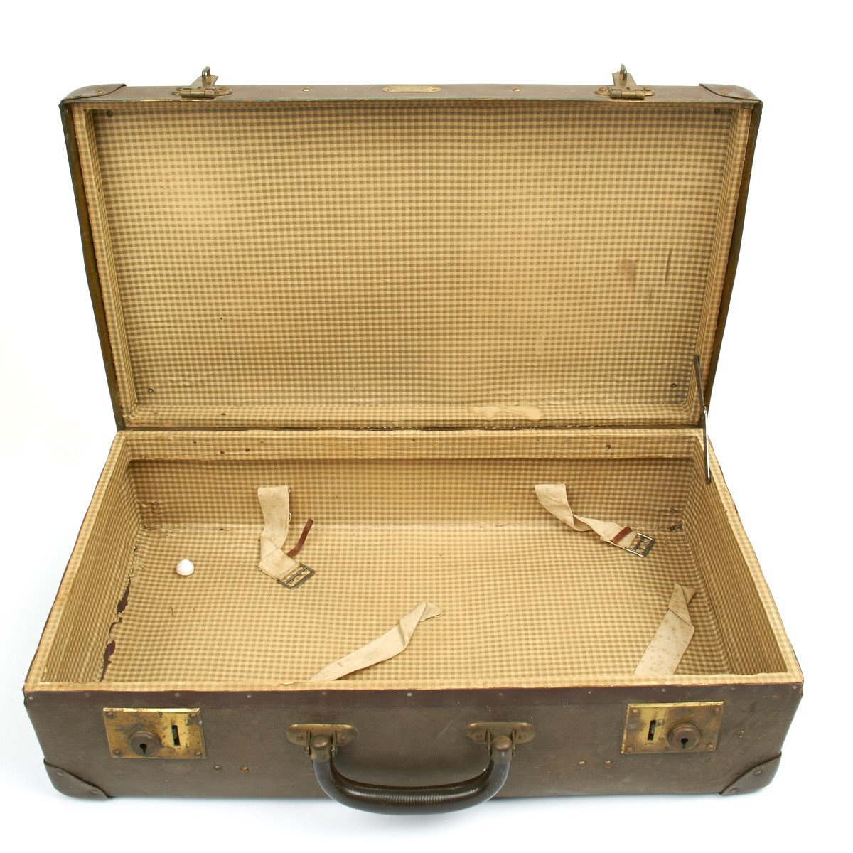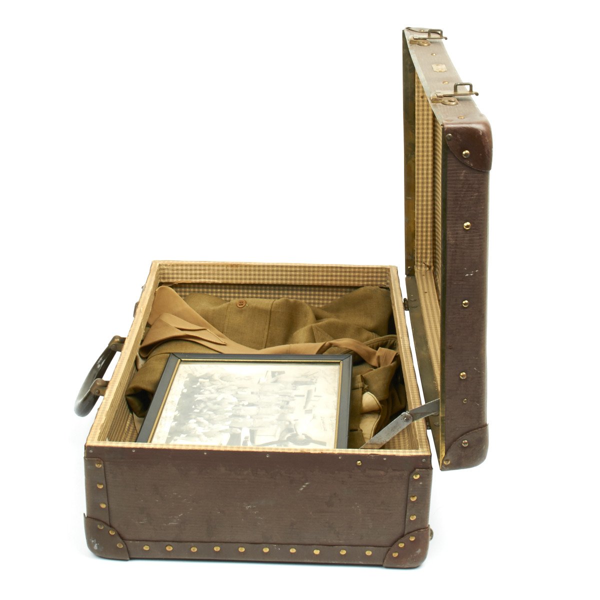 Original Items: one-of-a-kind set. Literally this comes "straight out of the attic! This grouping belonged to RYAN E. WALKER, #57417831 T43 from Salem Missouri. What this German fiber trunk with German Maker's name includes is the following:
