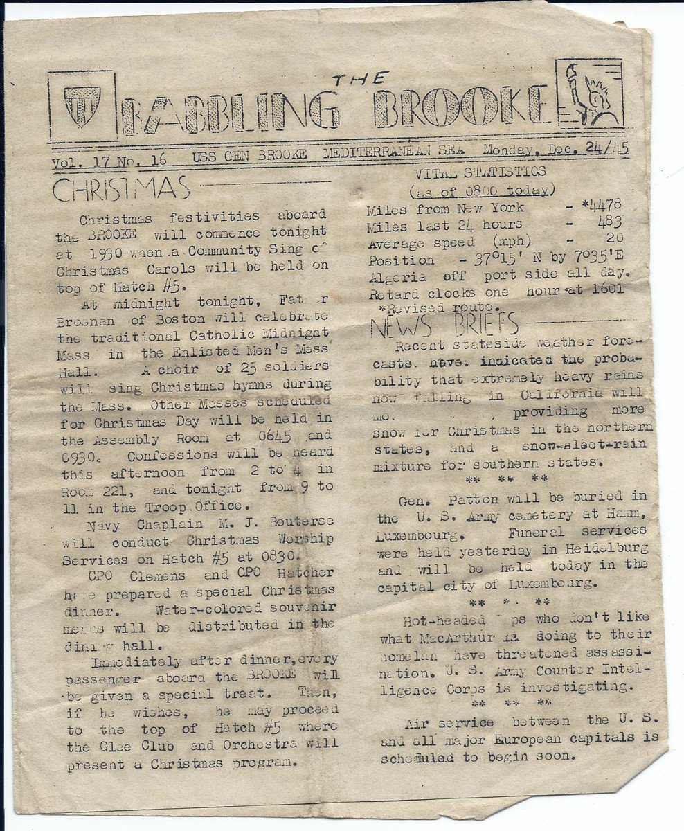 21 copies of an Army newspaper entitled "The Babbling Brooke" all dated to late 1945.