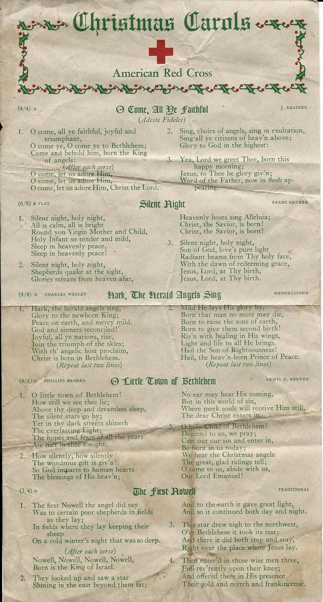 Christmas Song Sheet from the American Red Cross from 1944.