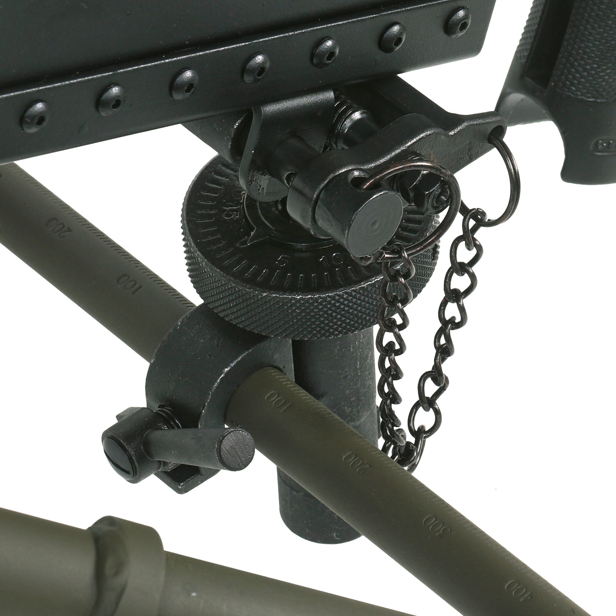 Each of these comes with one of our New Made Complete M2 Tripods, with both the pintle and T&E, as well as a short length of dummy ammo. Please note that as there is no feed mechanism in the replica gun, the ammo cannot lock into place.
