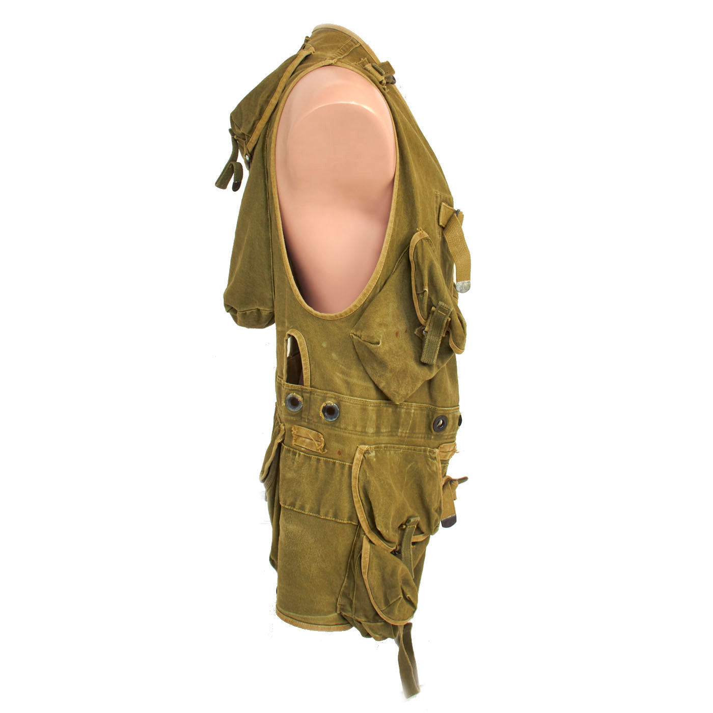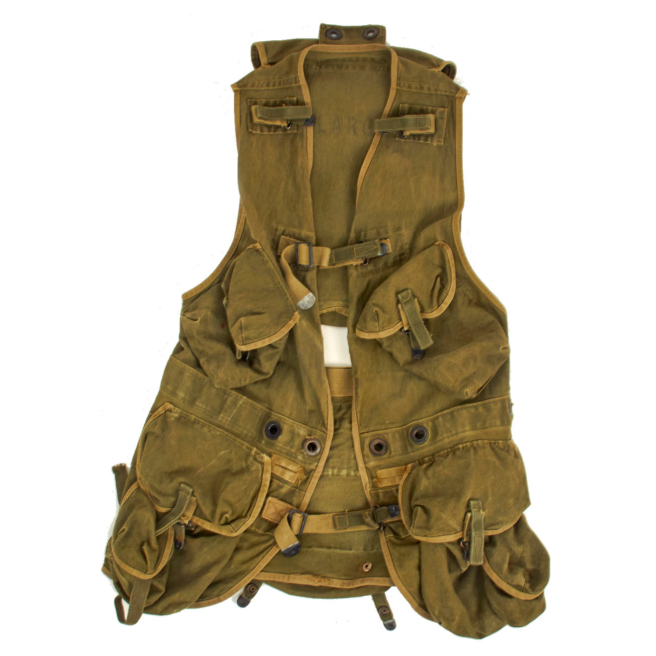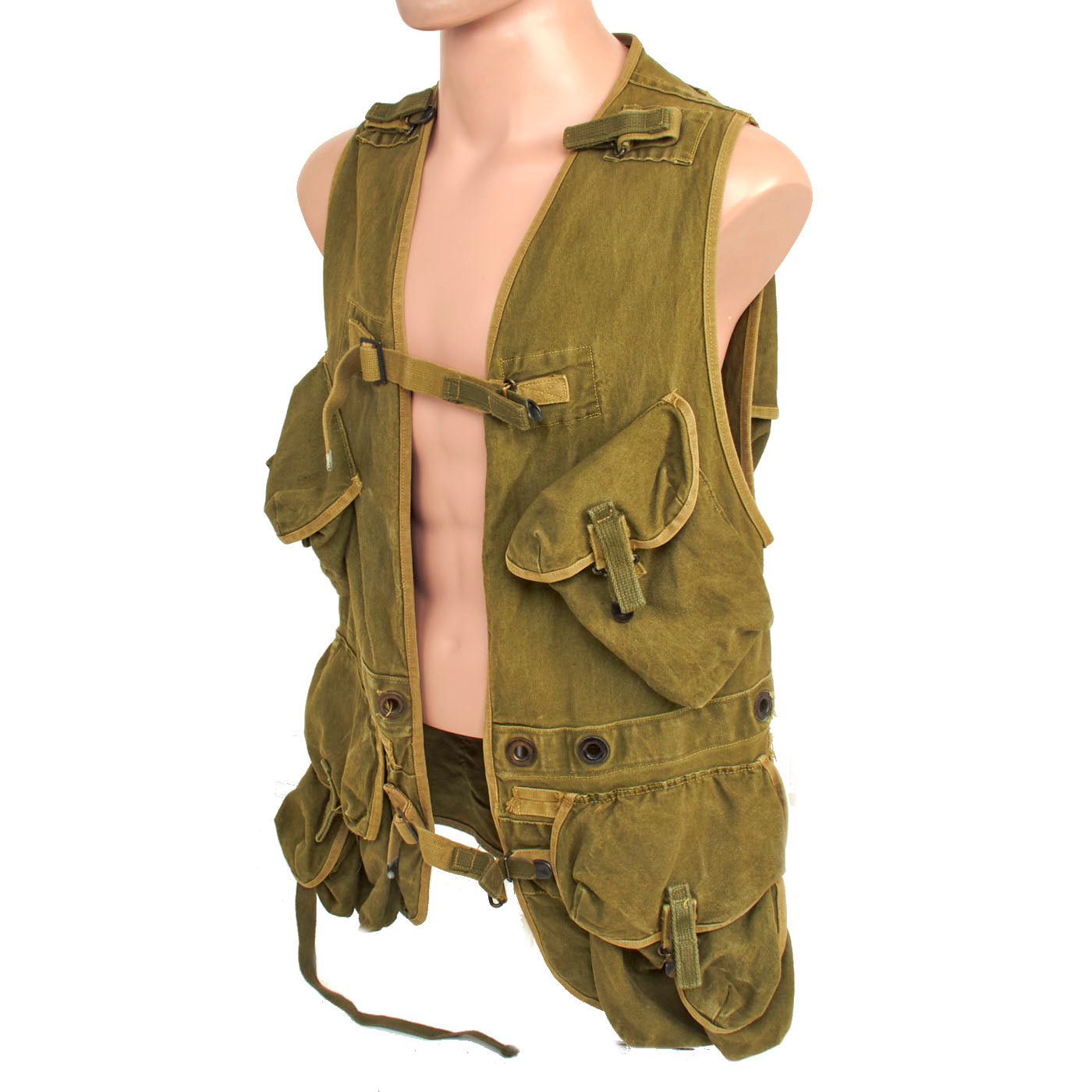 Replica Item: Only One Available. The Assault Vest was developed quickly for the D-Day invasion. It was modeled after an assault Jerkin used by British commando units. The American vest had a number of pockets to allow a soldier to carry all of his equipment without having to carry a separate pack and multiple equipment bags. On D-Day it was issued to some of the initial assault units and to some men of the 2nd and 5thRangers. Only about 14,000 vests were ever manufactured. The Army did not adopt them as standard equipment for ongoing use after D-Day.