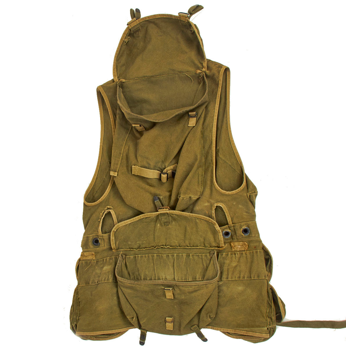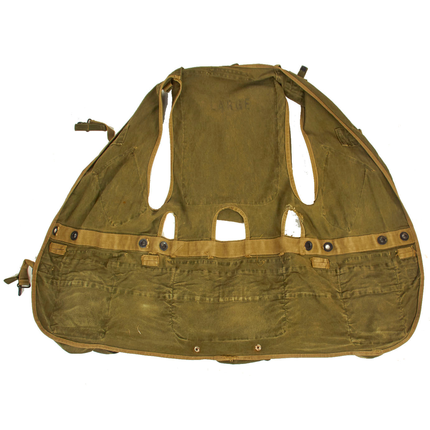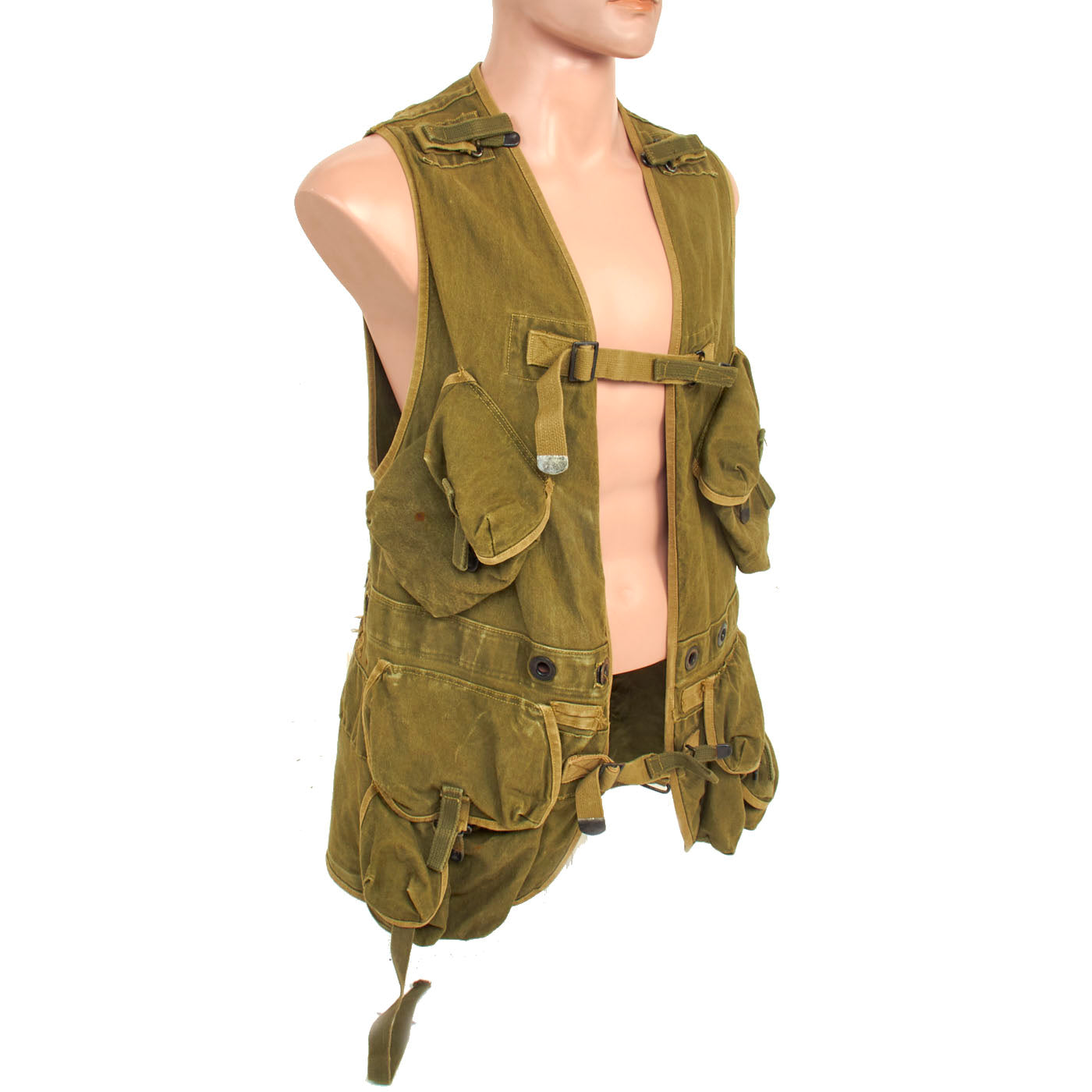 Replica Item: Only One Available. The Assault Vest was developed quickly for the D-Day invasion. It was modeled after an assault Jerkin used by British commando units. The American vest had a number of pockets to allow a soldier to carry all of his equipment without having to carry a separate pack and multiple equipment bags. On D-Day it was issued to some of the initial assault units and to some men of the 2nd and 5thRangers. Only about 14,000 vests were ever manufactured. The Army did not adopt them as standard equipment for ongoing use after D-Day.