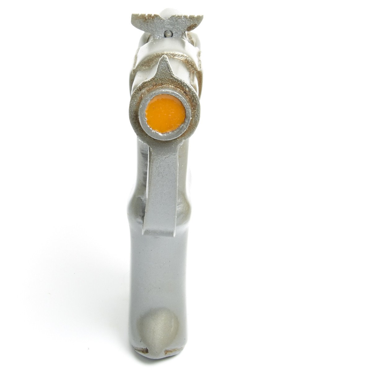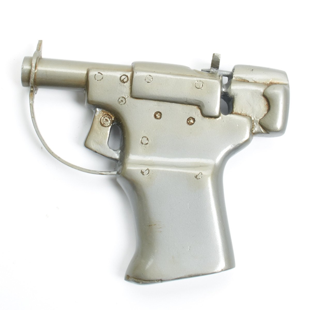 Our solid resin non-firing display gun is nothing short of stunning. It really does look like the real thing from just a few feet away. It was cast from a silicon mold of an original FP-45 Liberator in the IMA collection and therefore is not only an accurate 1:1 scale but has all the details of the real thing. It has been expertly air brushed to provide the cold glimmering look of stamped steel.