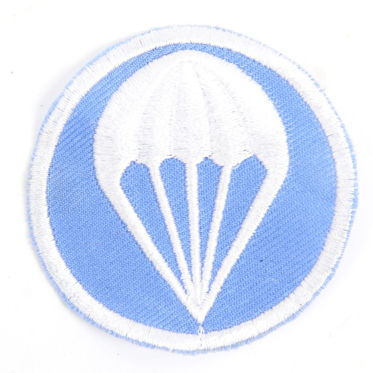 New Made Item: High quality heavily embroidered U.S. WW2 Paratrooper badge as worn by the 101st and 82nd Airborne. Placed on the standard issues USGI wool overseas cap, worn on the right side by officers, and the left side by enlisted men. Patch features sky blue background with white parachute.