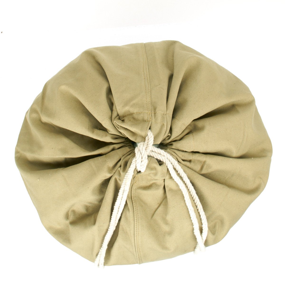 New Made Item: This is an outstanding rugged reproduction of the WW2 barracks bag constructed of OD #3 canvas with period correct heavy-duty white draw cords. Top quality seams are correctly double needle felled, mirroring the construction of originals adding to overall durability. This is a near exact copy of the original and truly top quality!