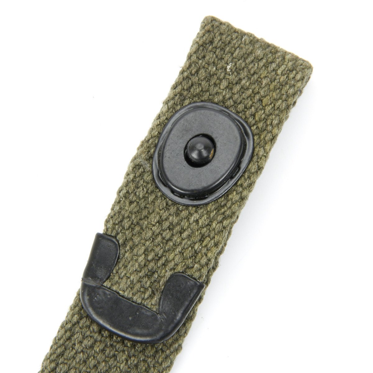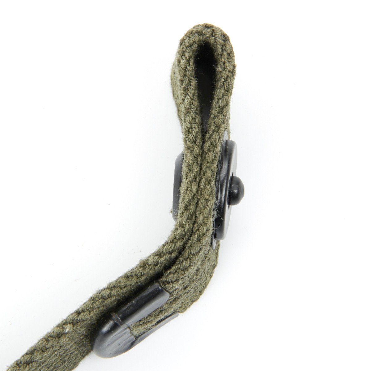 New Made Item: This is a high quality strong web sling that was copied from an original WWII M1 carbine sling in the IMA collection. We even made it the correct cut out pinched steel ends and full metal lift-the-dot type snap. A nice ink U.S. stamp is added for historical authentic.