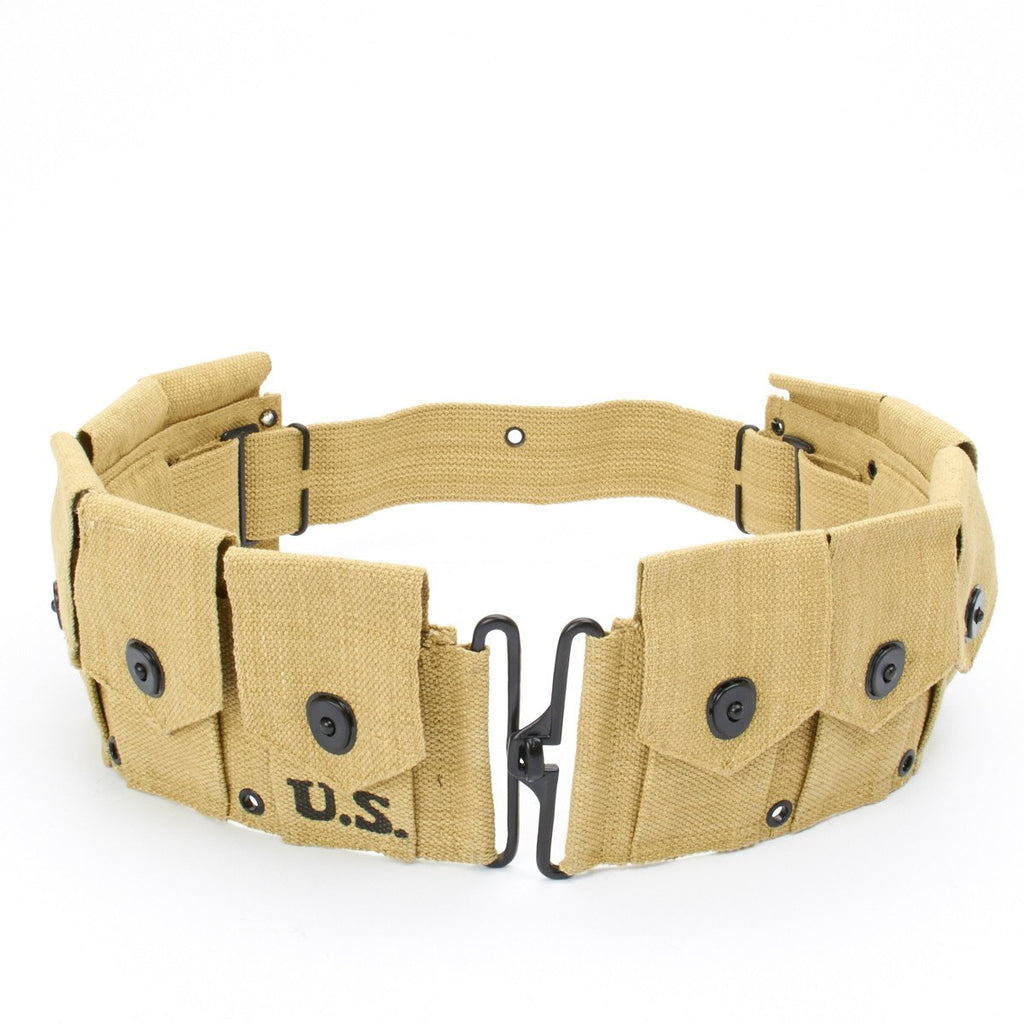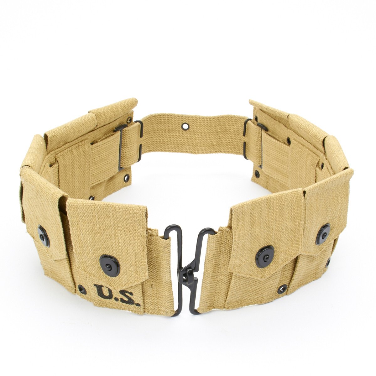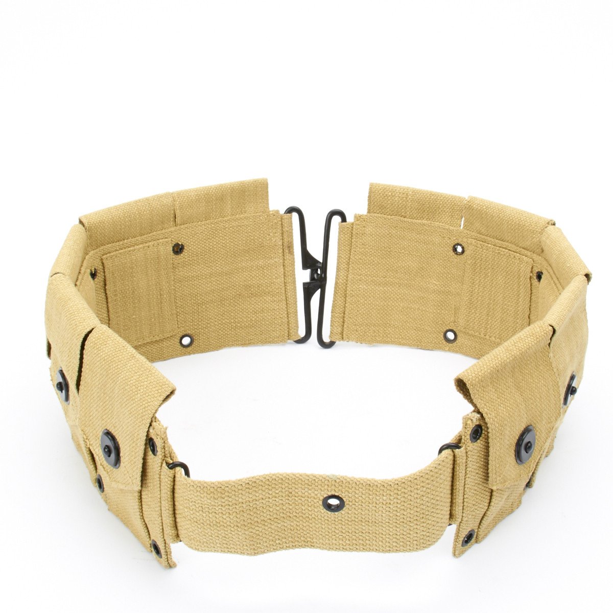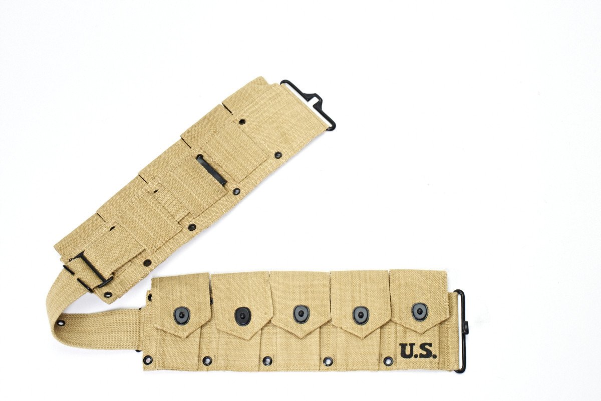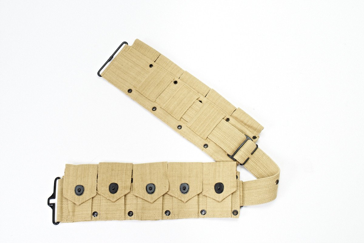 New Made Item: Khaki Tan web ammunition belt with ten pouches each intended for clips of M1 Garand ammunition.
