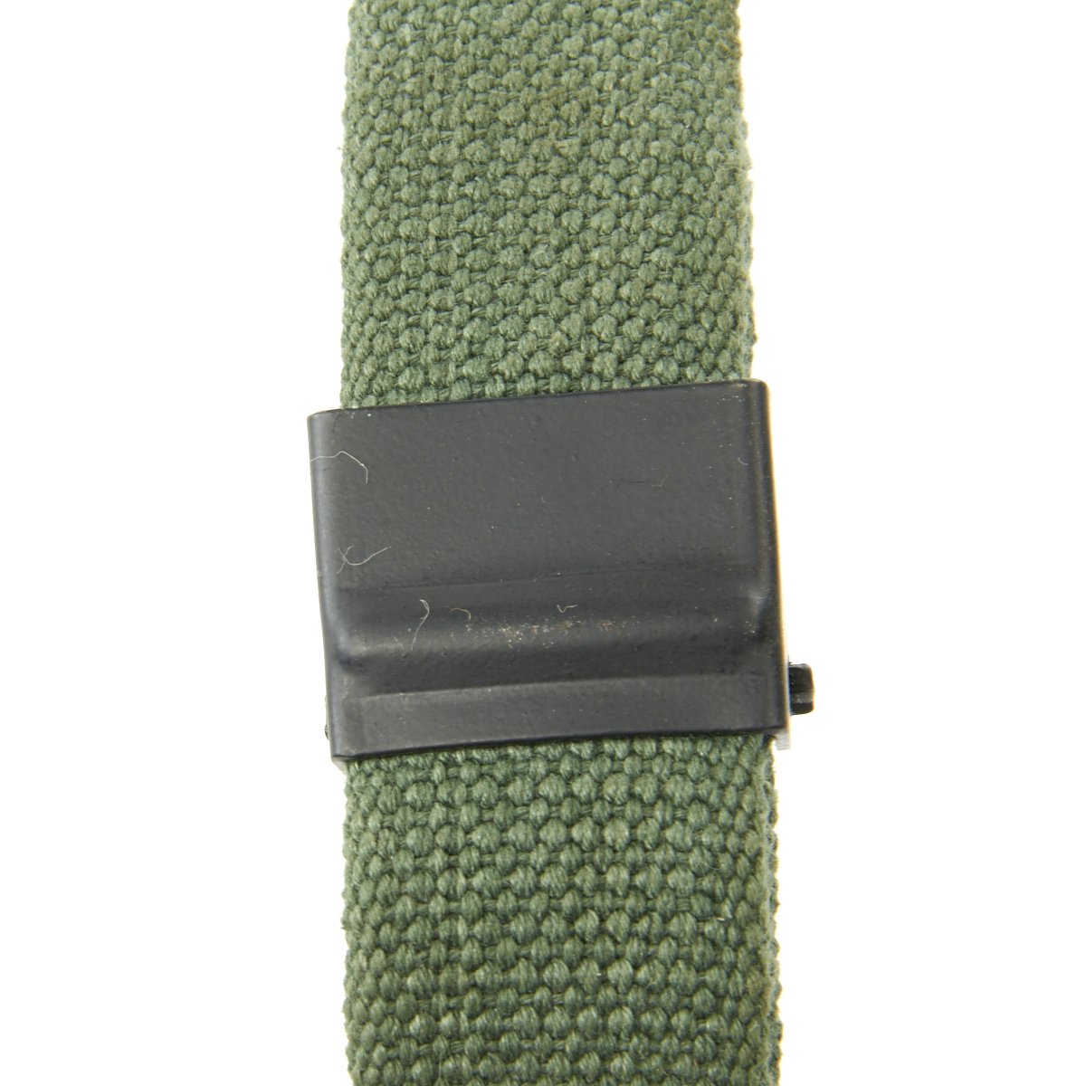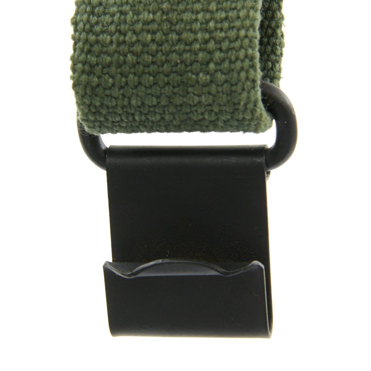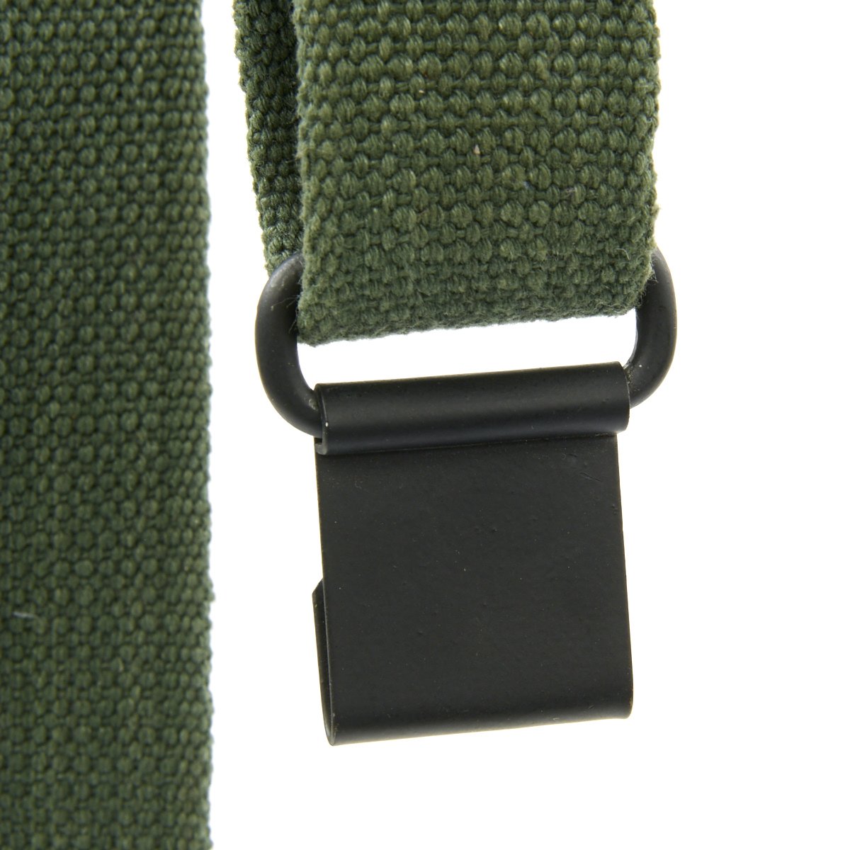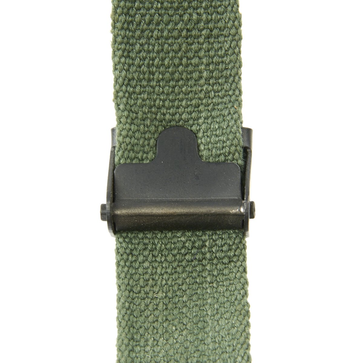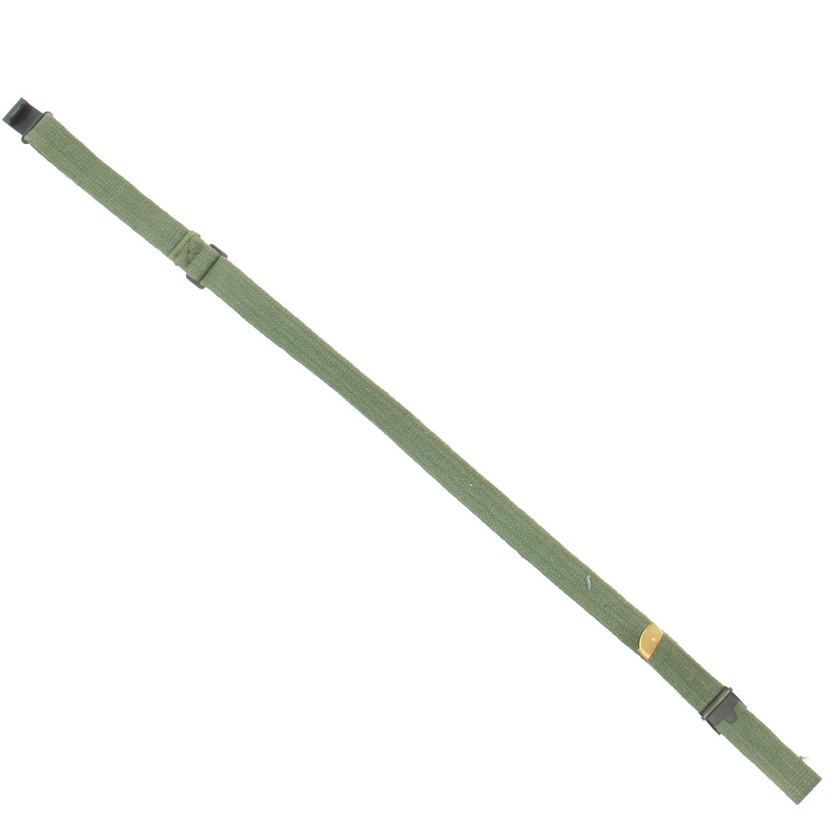 This is the first Web M1 Garand Rifle Sling introduced in WW2 and used until the Vietnam war. Complete with blackened phosphate steel mounts, sliders and hooks; these always wore out with haste under combat conditions.