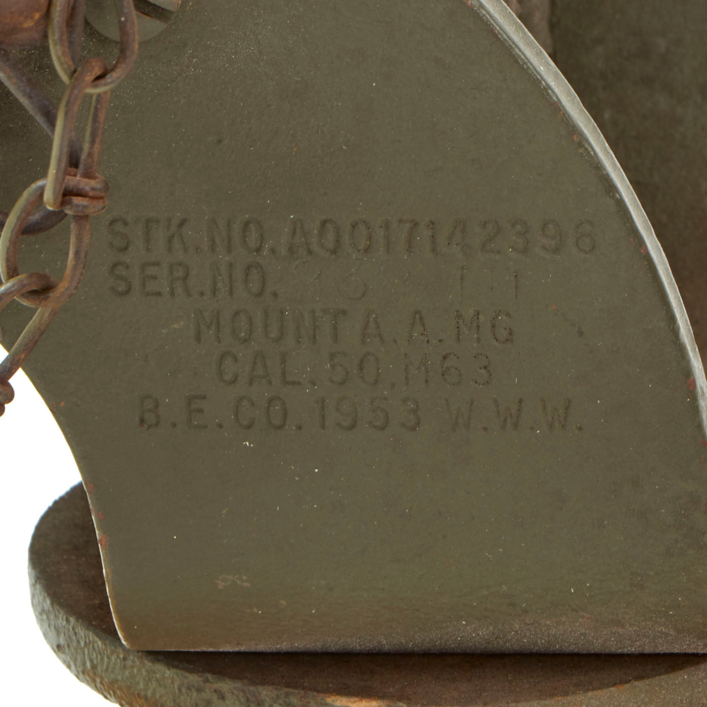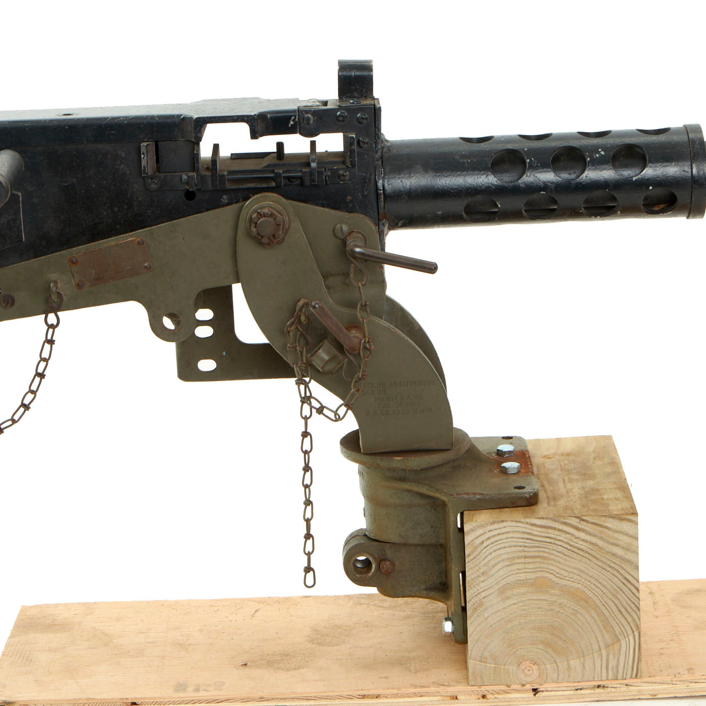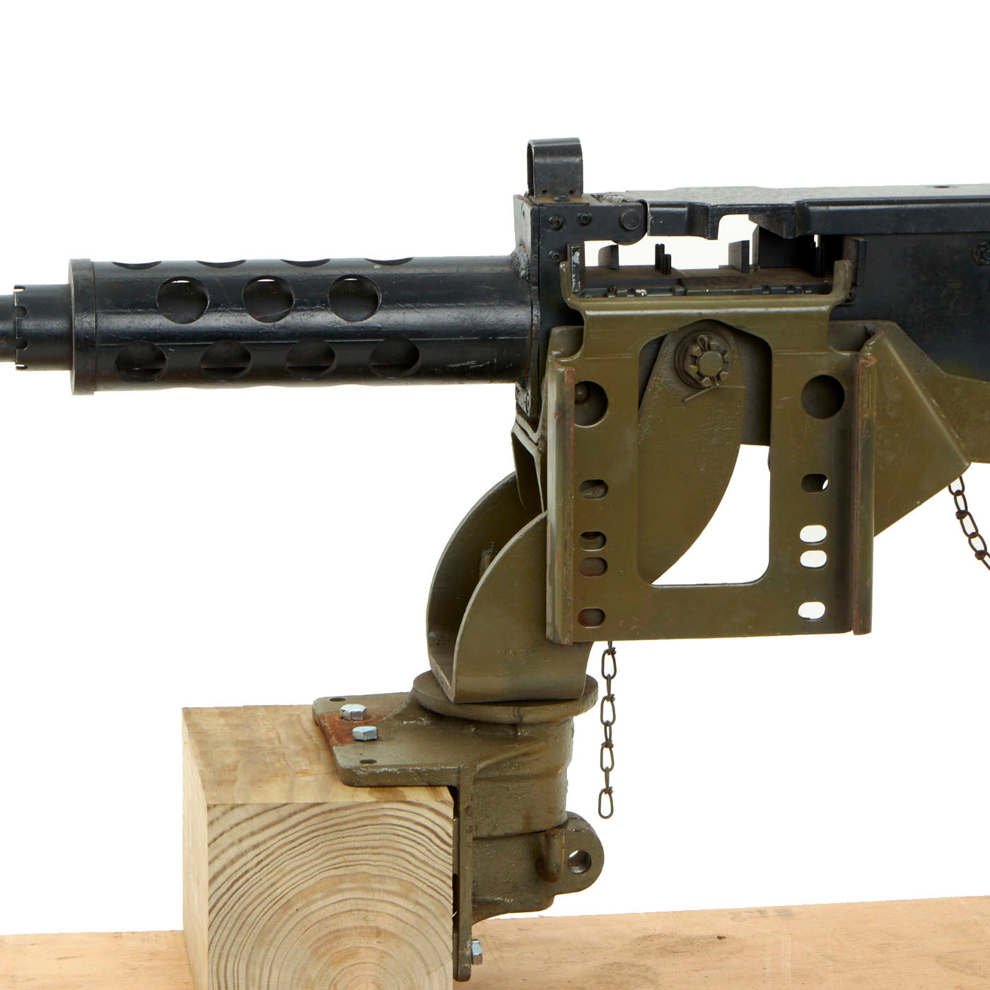 It comes with a vehicle mount and Ammunition box and Ammunition box cradle (the ammo cradle needs adjustment to fit to the gun) as would have been used on a half-track. This is a great chance to have a lightweight (approx 25 lbs) Ma Deuce replica, which will look great in any display setting. (Custom wood base is included with purchase).