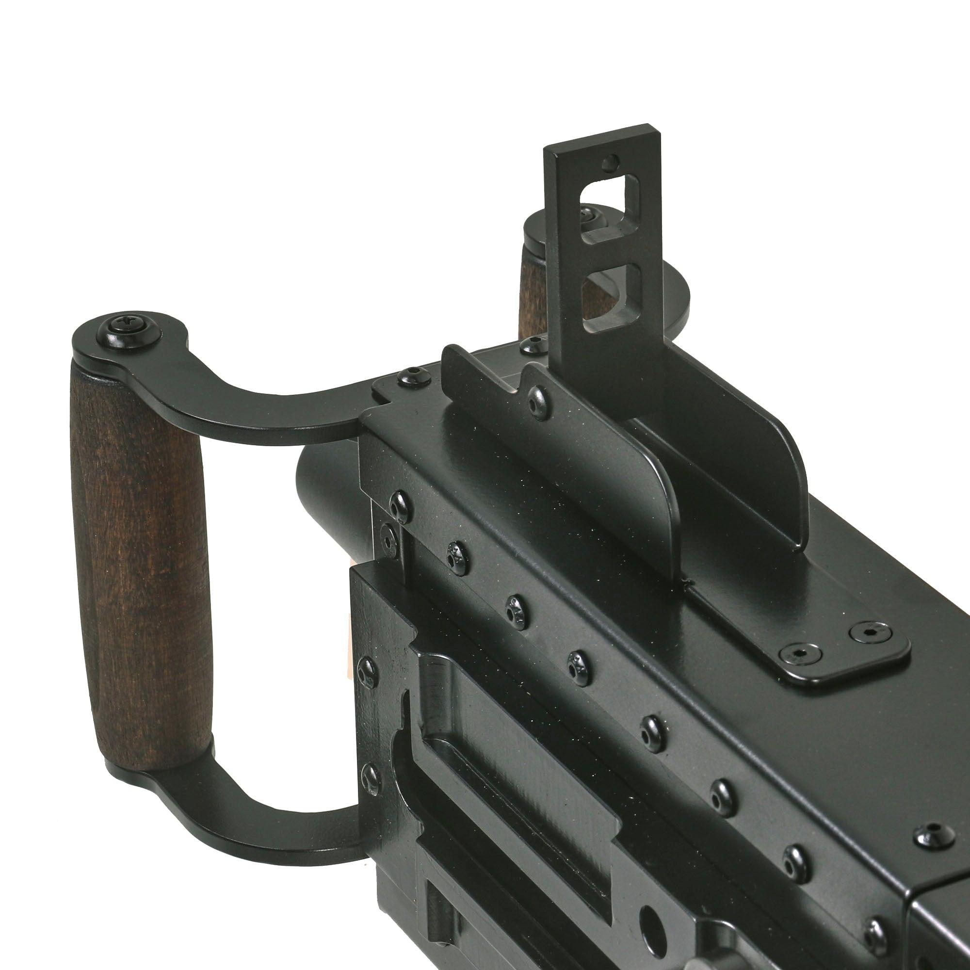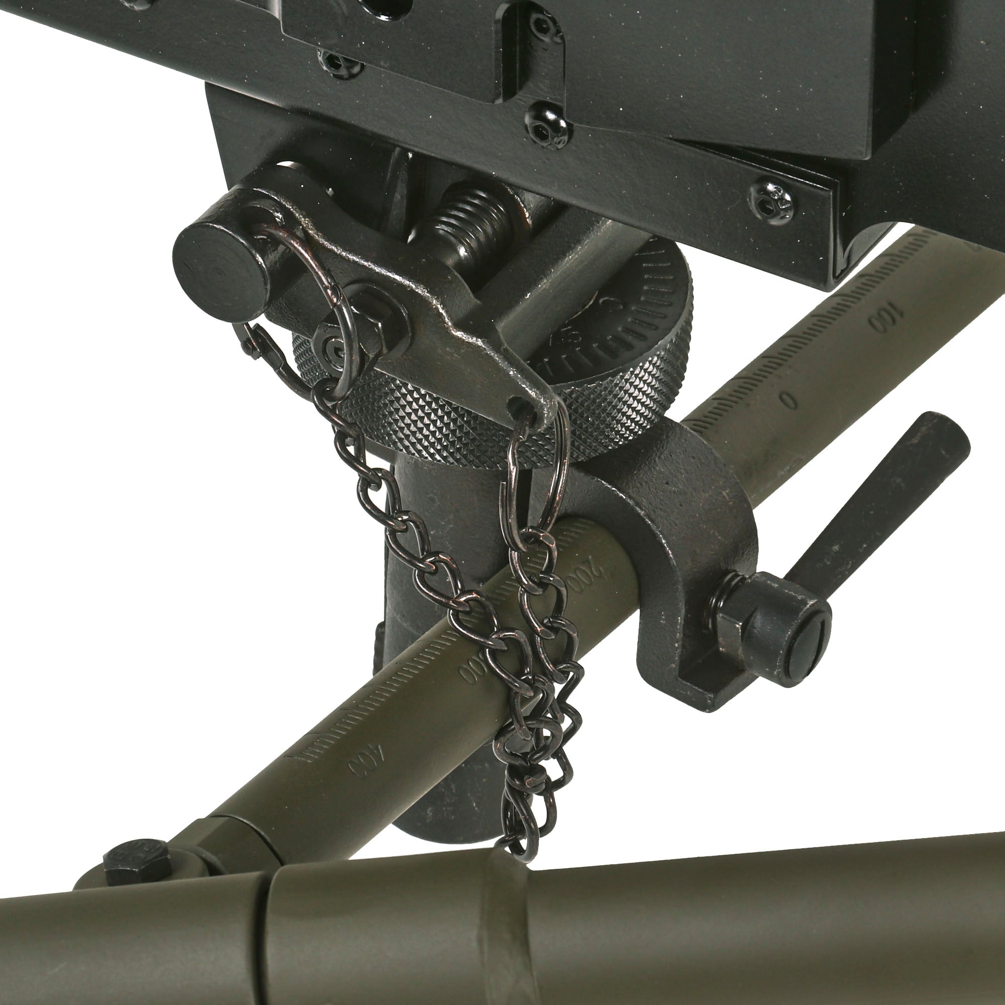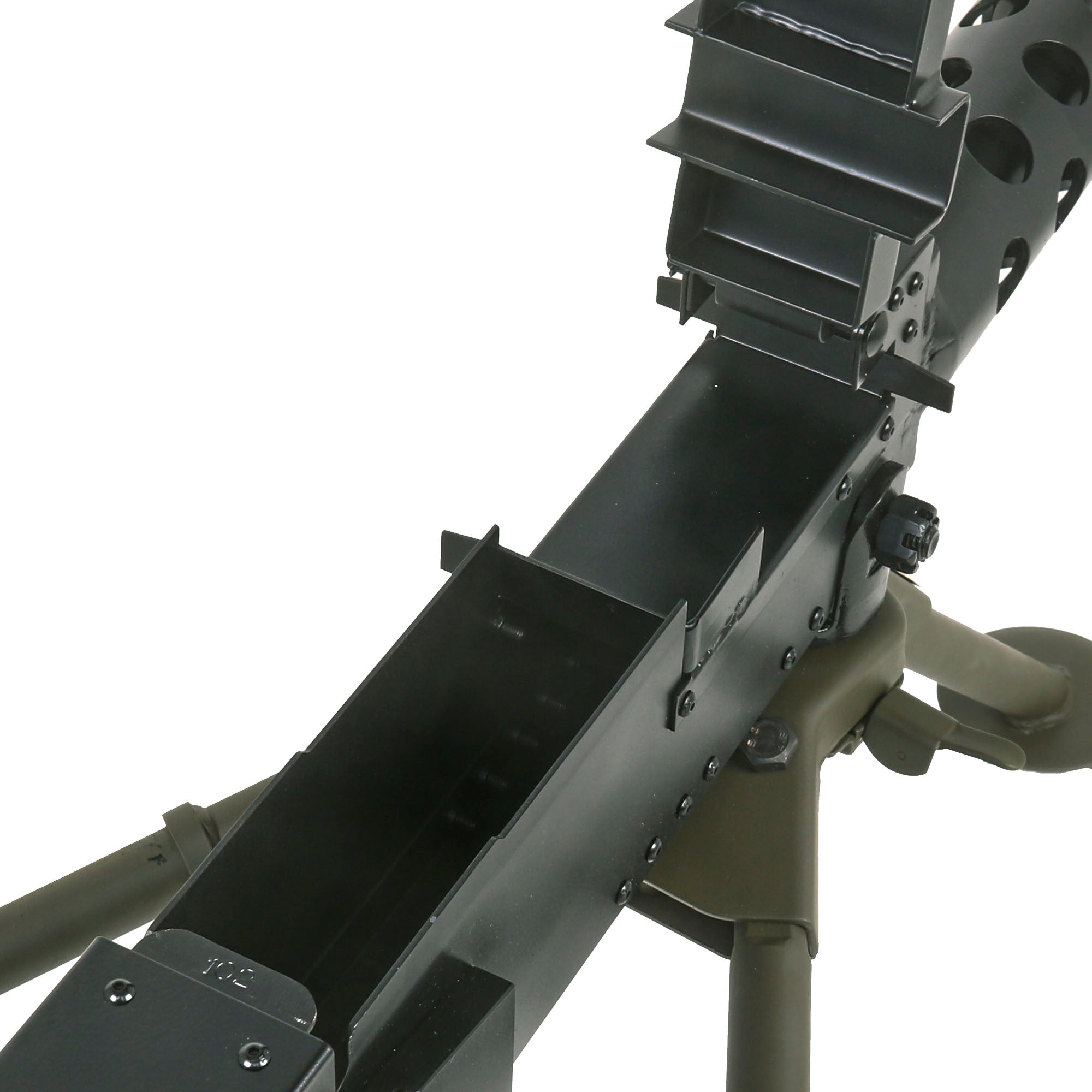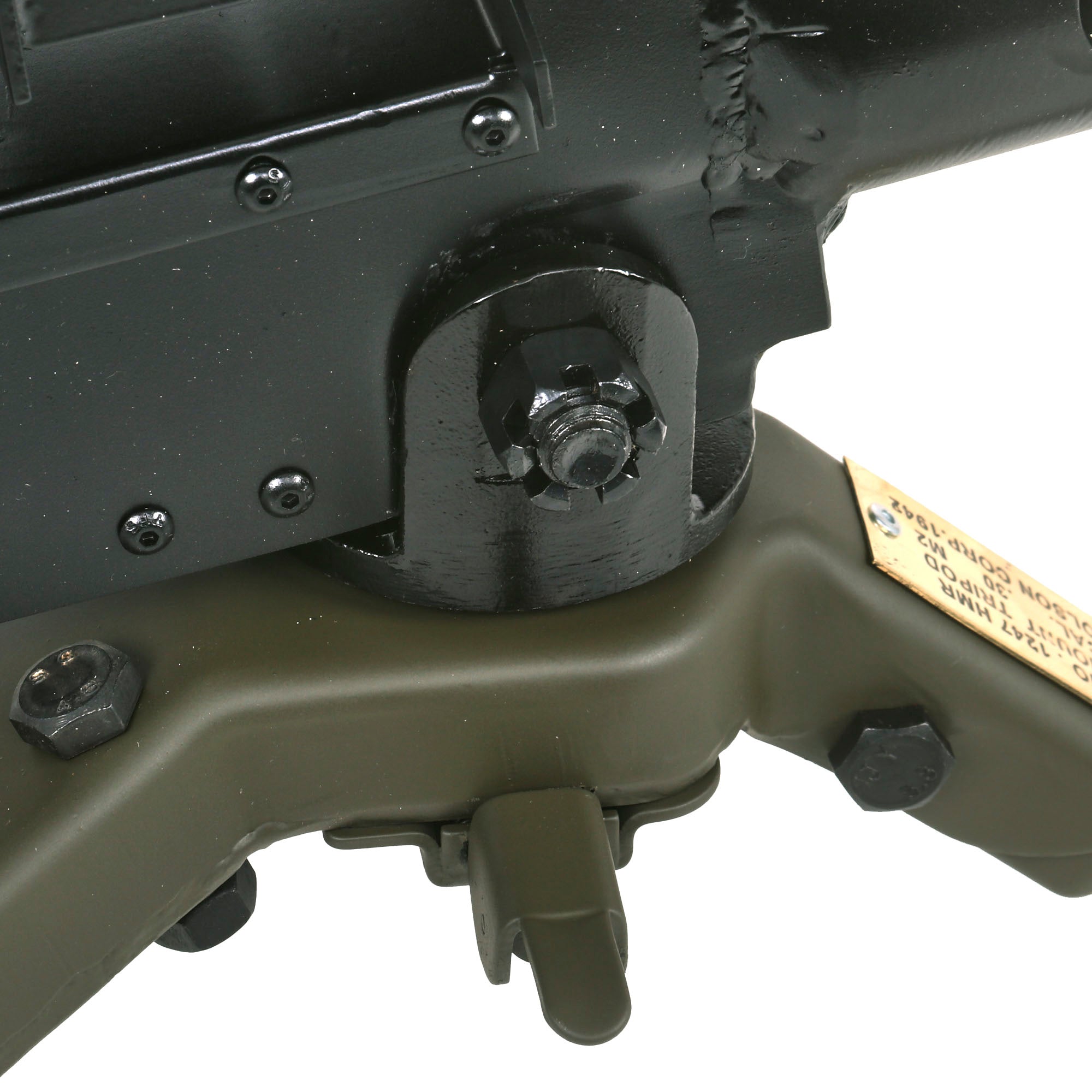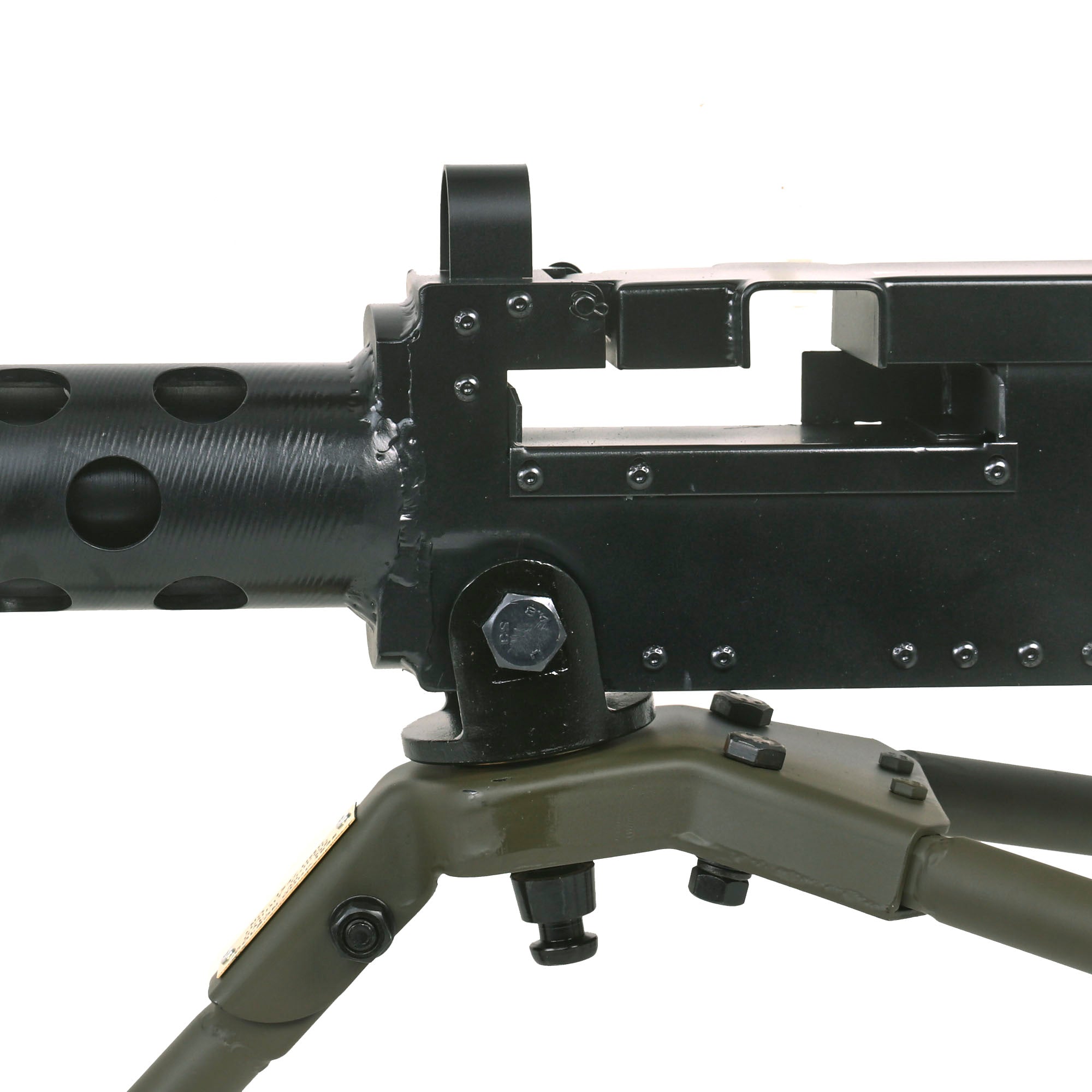 The display gun comes with one of our lovely New Made Complete M2 Tripods, which has both the pintle and T&E. Please note that this is the correct tripod for an M1919 Browning, however for display purposes it works just fine with the replica M2. Please note that the T&E is not quite long enough to work right with the longer M2 receiver.
