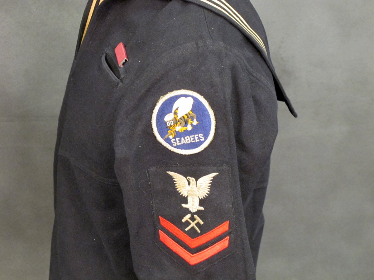 Original Items: Only one set available. Remember John Wayne’s 1941 Movie "The Fighting SeaBees"? Well, this soldier was one of them! The Seabees, or SeaBees, are the Construction Battalions (CBs) of the United States Navy. The Seabees have a storied history of accomplishing myriad construction and repair projects in a wide variety of military theaters originating in World War II. Their logo, says it all, a wrench in one hand and a machine gun in another.