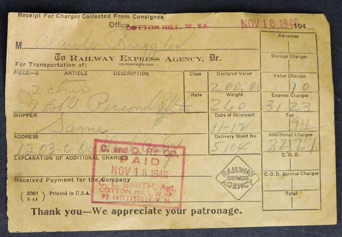Purchased from a little old lady, yes, literally, straight out of attic, still having the owner’s original railway express agency receipt dated November 18th 1946, documenting his return home.