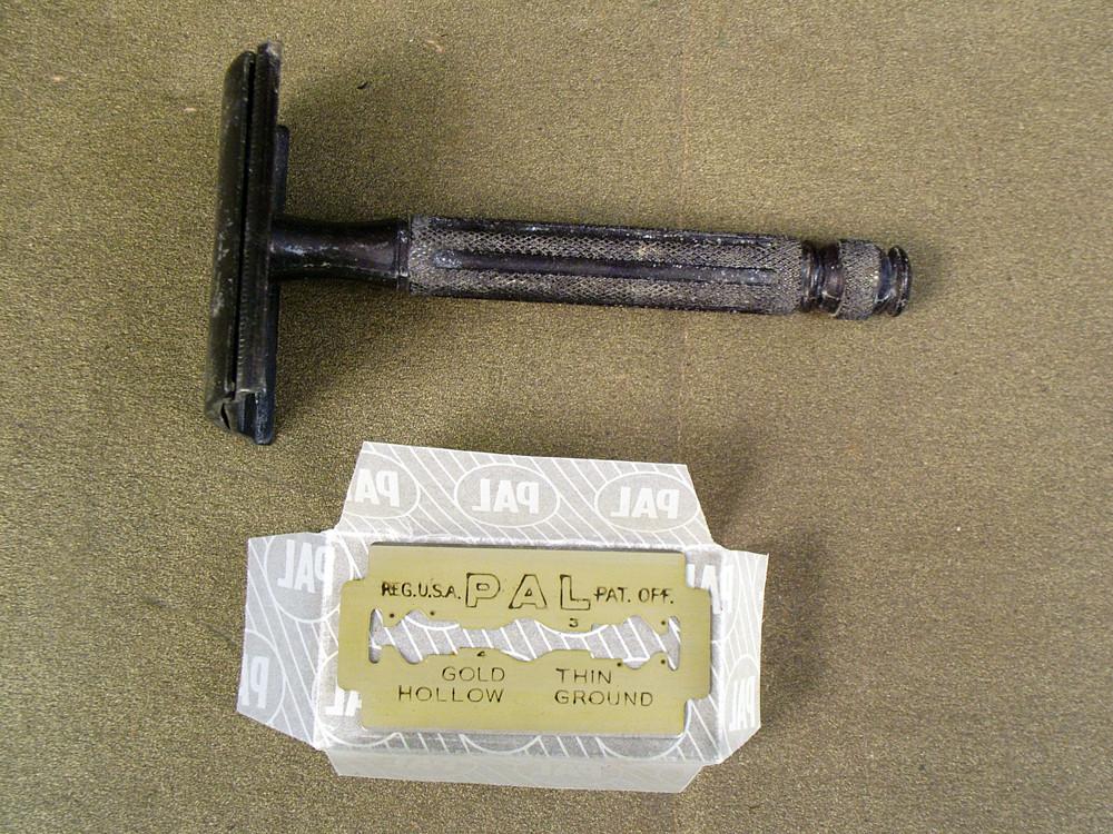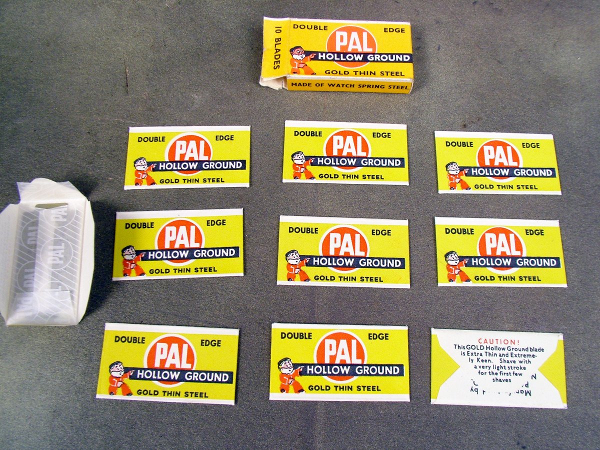 The Blades- Original Item: Totally un-issued, still in sealed packs of TEN blades per pack, new old stock! "Hollow Ground, Gold Thin Steel, Made from Watch Spring Steel" these are the claims on the exterior of the 1940?s era packaging, sealed, still with cellophane covers intact. Interestingly detailed script in Italian indicating these U.S. made products from the PAL Blade Company of New York were shipped to U.S. Forces in Italy after the invasion of 1943. Original unopened pack of 10 blades.