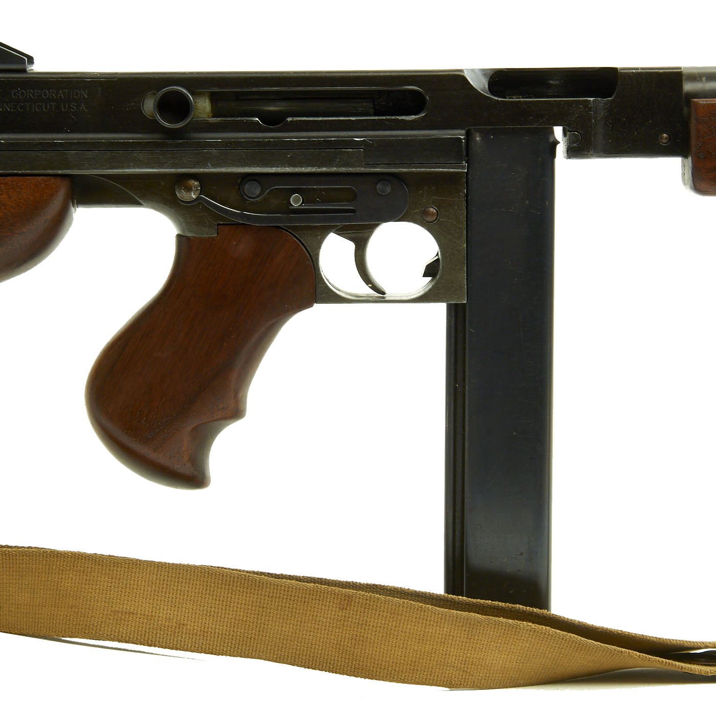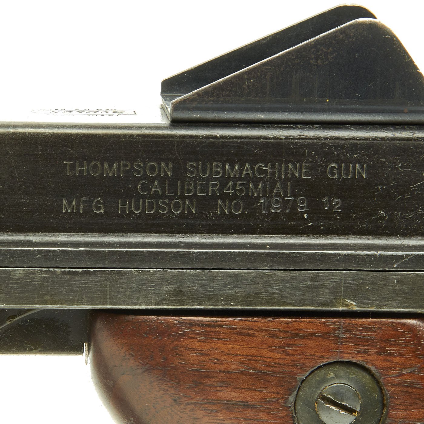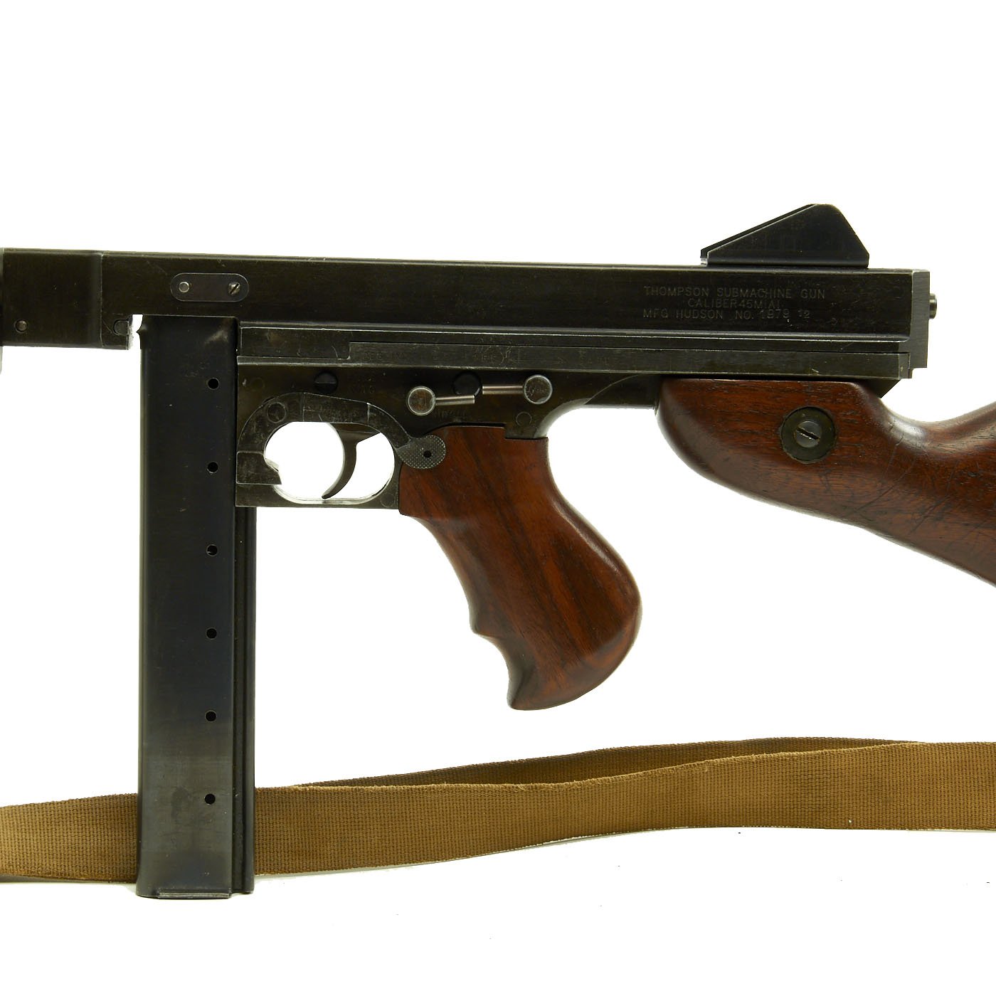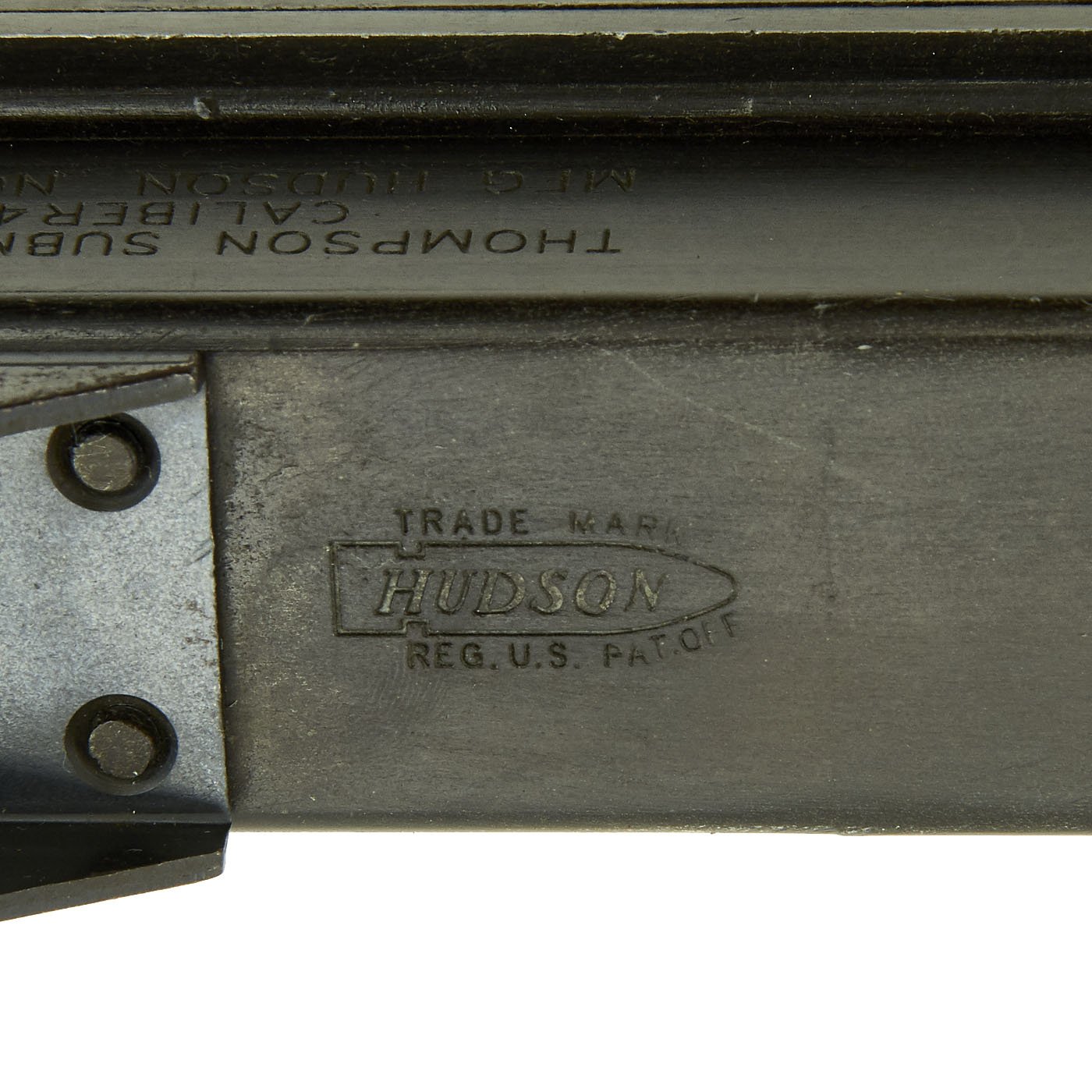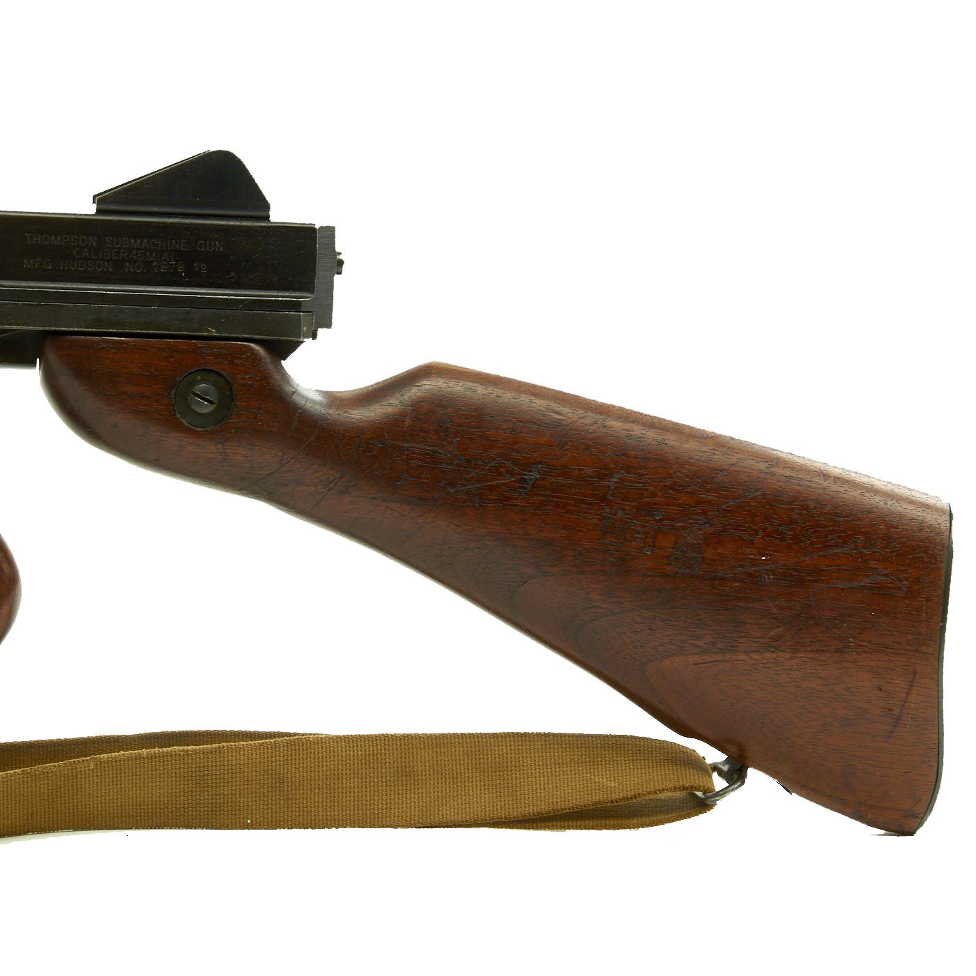Original Item: Only One Available. Currently this gun appears to be functional as a blank fire cap gun. However, as we don't have any caps to test it we can't be totally sure. The bolt does pull back and fly forward when the trigger is pulled. This is the Hudson WWII U.S. Army Thompson M1A1, which is no longer produced. Superb replica which field strips exactly like the real thing! Includes a 20rd stick magazine.
