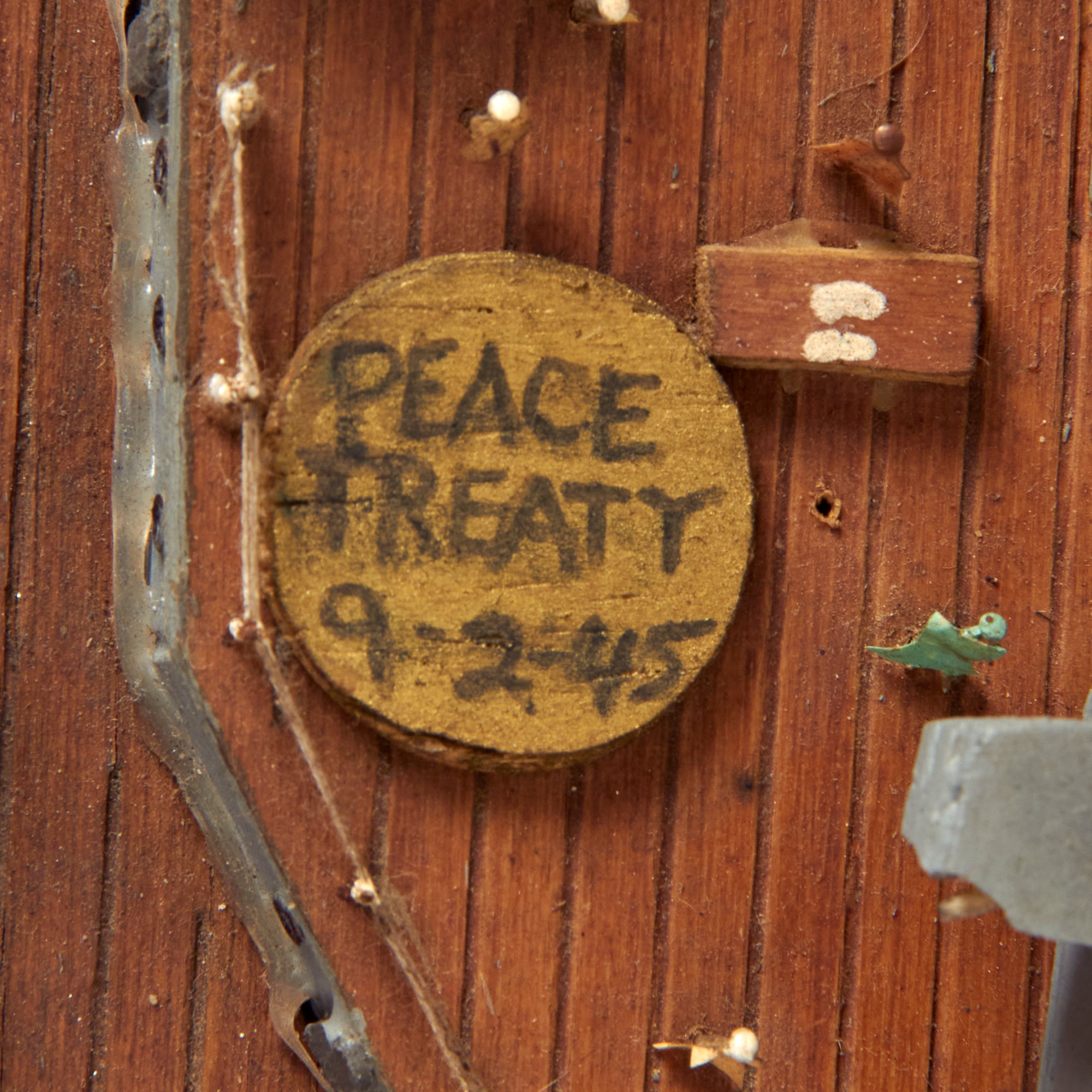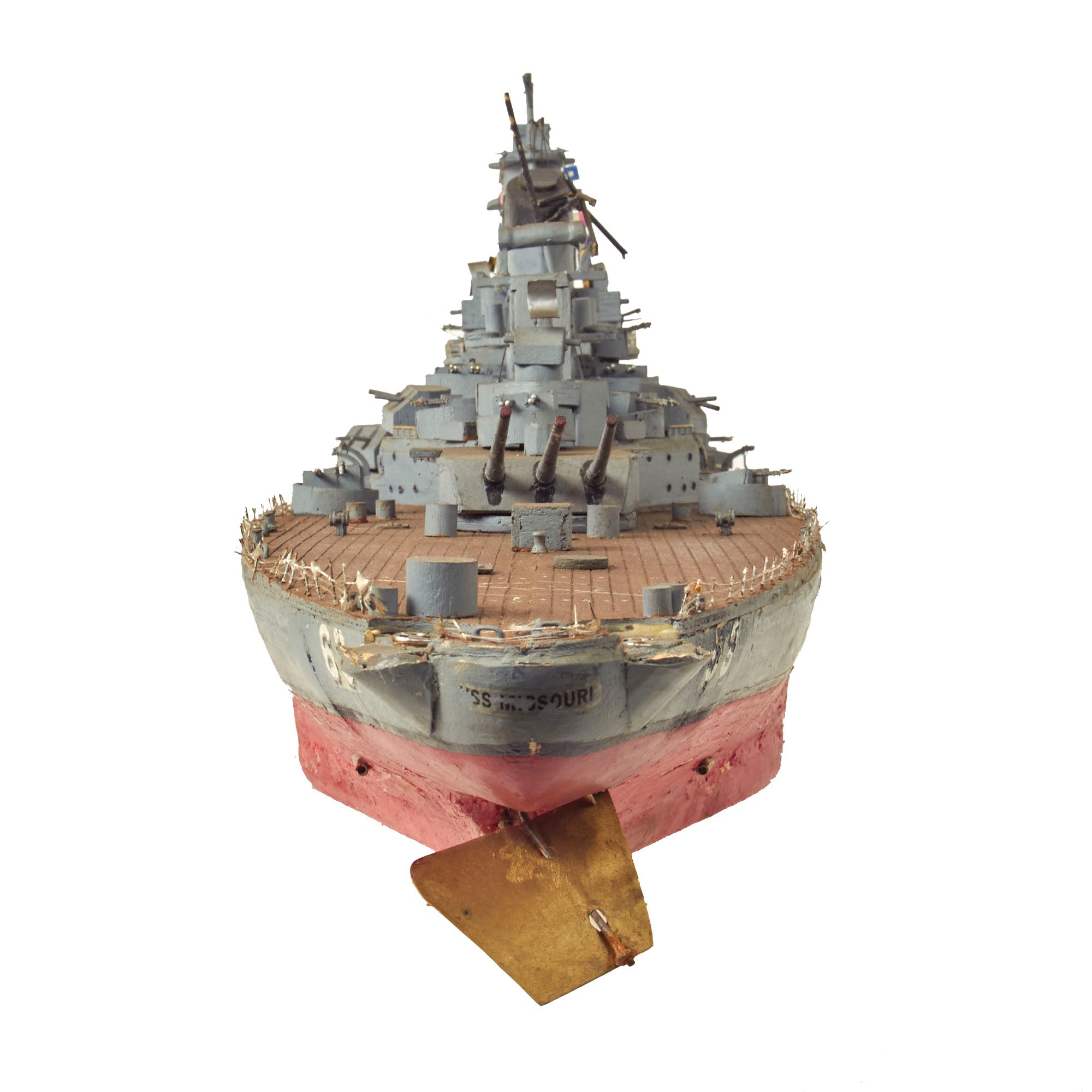 USS Missouri (BB-63) is an Iowa-class battleship built for the United States Navy (USN) in the 1940s and is currently a museum ship. Completed in 1944, she is the last battleship commissioned by the United States. The ship was assigned to the Pacific Theater during World War II, where she participated in the Battles of Iwo Jima and Okinawa and shelled the Japanese home islands. Her quarterdeck was the site of the surrender of the Empire of Japan, which ended World War II. She has been called the most historic battleship in the world.