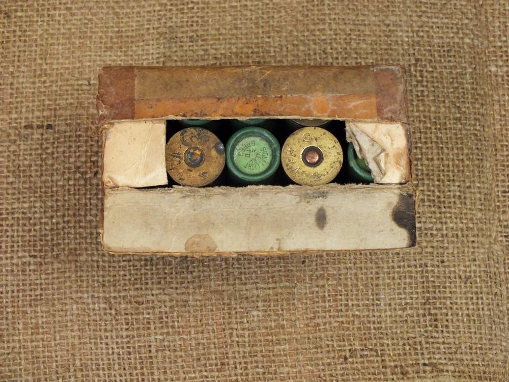 Original Item: An original box of ten 10-gauge green flares dated 6-16-41. These are the flares used by the U.S. Navy Sedgley Mark V Signal Pistol. The flares are far rarer now than the pistols, and a full box is even rarer. It is in fact a mystery how these managed to go all the way through the Second World War without having been used.
