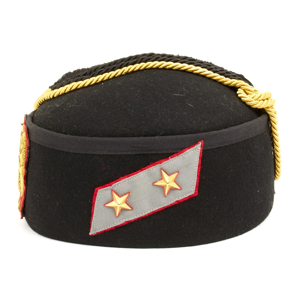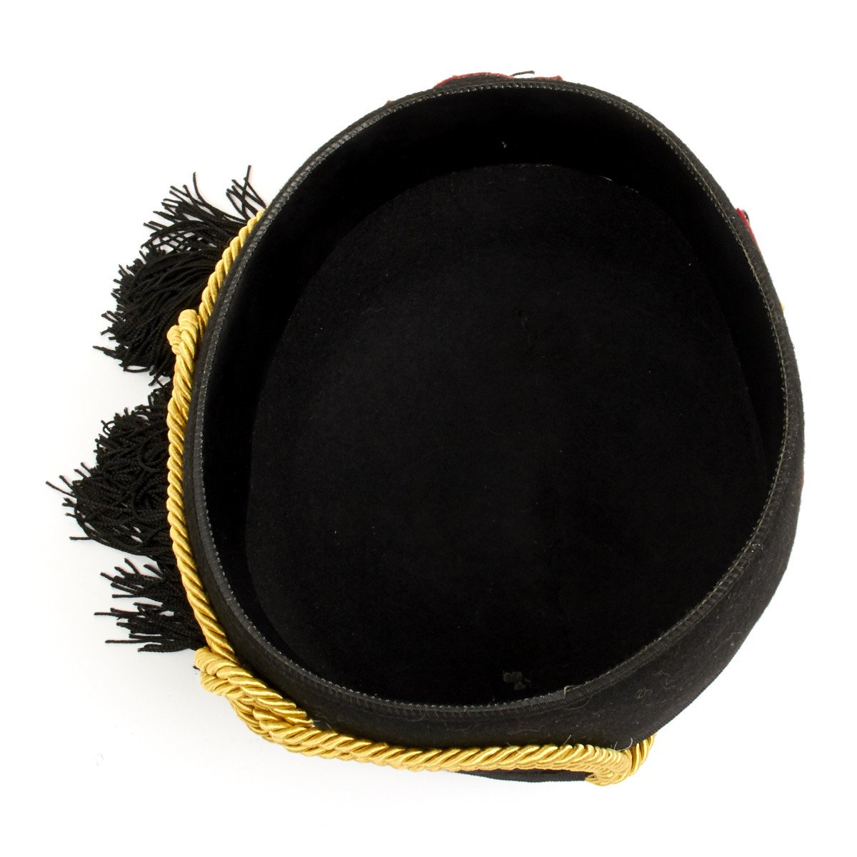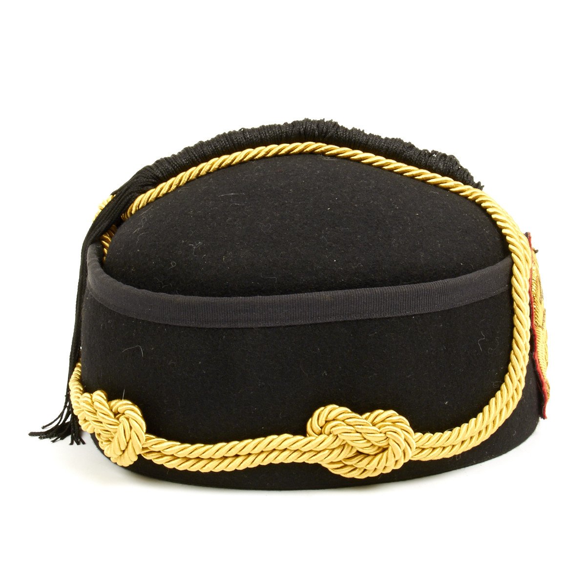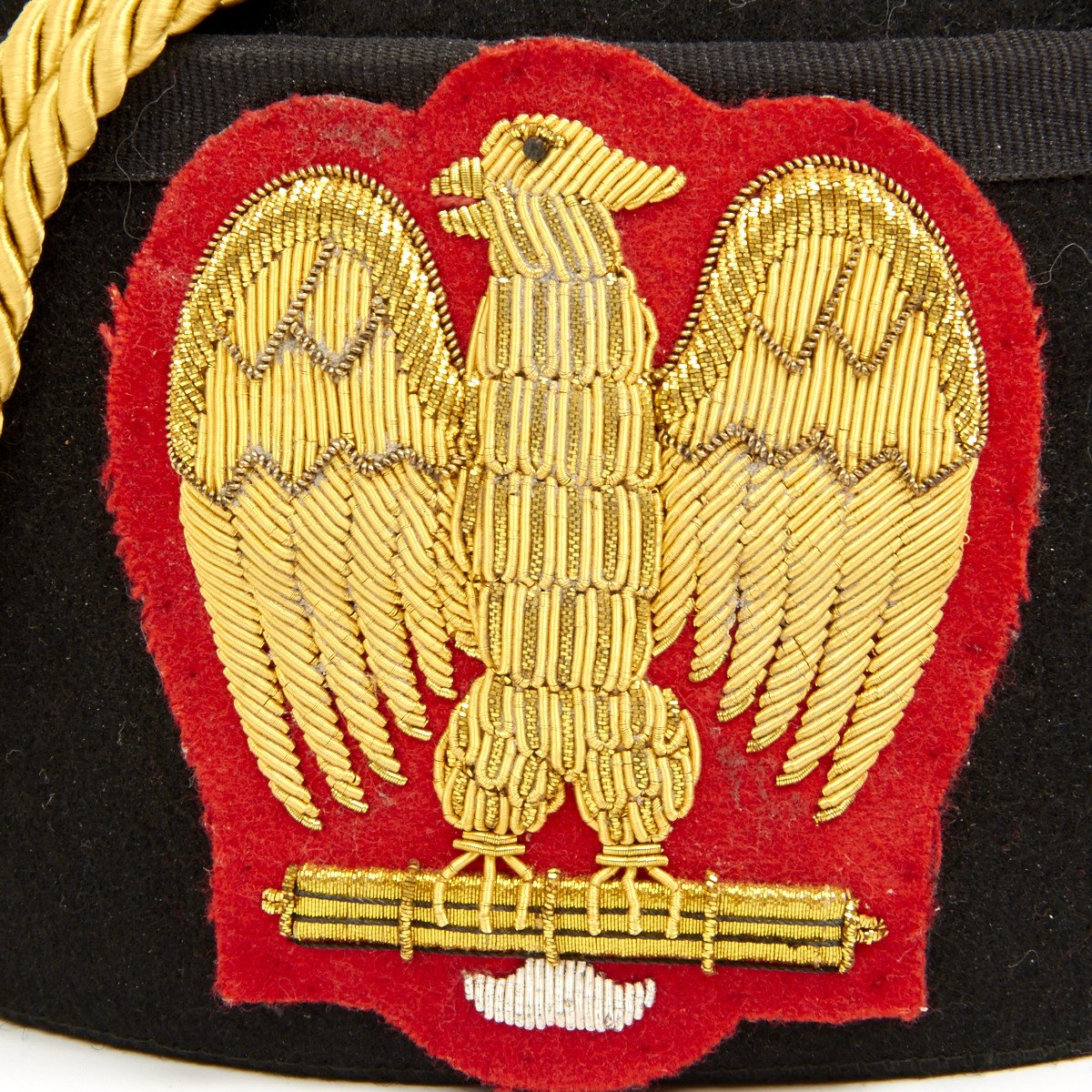 This excellent condition fez features a gold bullion embroidered eagle symbol to front, gold rope braid and two stars to the left side. It is approximately size 59 cm (7 3/8) and comes complete with long braid tassel. Excellent eye catching item for any WW2 Italian collection.